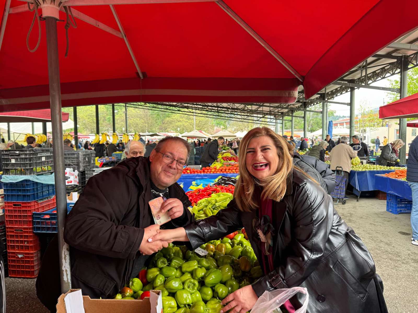 Η βουλευτής Λάρισας επισκέφθηκε τη λαϊκή αγορά, τα καταστήματα και τις επιχειρήσεις της πόλης, ενώ συνομίλησε με πολίτες, επιχειρηματίες, εμπόρους και αγρότες, ενώ ακολούθως κατευθύνθηκε στην αγορά και τα καφέ της πόλης, ανταλλάσσοντας ευχές με φίλους, παράγοντες και φορείς της τοπικής κοινωνίας.