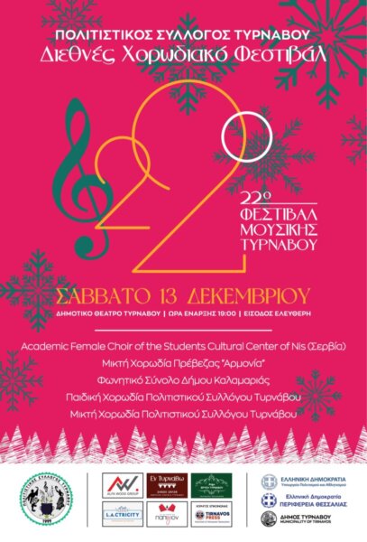 Σάββατο 8 και Κυριακή 9 Φεβρουαρίου 2020 Ώρες: 10:00 – 14:00 Δημοτικό Ωδείο Λάρισας – Αίθουσα “Ήβη Βοζαλή”