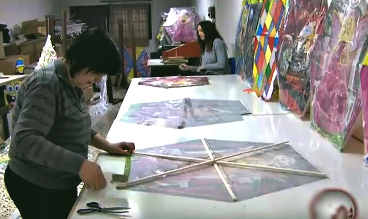 Υστερα, ξεκινά η κατασκευή. Η παραδοσιακοί χαρταετοί φτιάχνονται από καλάμι. Δεν γίνεται, όμως, να βρεθούν καλάμια για τόσους πολλούς χαρταετούς. «Προμηθευόμαστε μια συγκεκριμένη ποικιλία λεύκας, που τα κλαδιά της μοιάζουν με καλάμι. Συναρμολογούμε τον σκελετό, βάζουμε το χαρτί ή πλαστικό με το σχέδιο και στο τέλος μπαίνουν τα ζύγια και η ουρά» εξηγεί ο Νίκος Καρανικόλας. Καθένας από τους εργαζόμενους στην βιοτεχνία ειδικεύεται σε ένα κομμάτι της διαδικασίας.