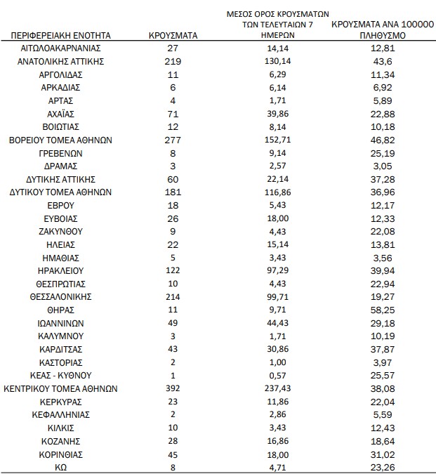Όπως κάθε μέρα, έτσι και σήμερα η Αττική κατακτά την αρνητική πρωτιά των κρουσμάτων. Την ίδια στιγμή, «πονοκέφαλο» στους ειδικούς προκαλούν αρκετές ακόμα περιοχές της Ελλάδας.