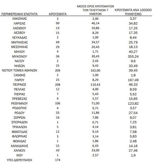 Τέλος, 174 κρούσματα παραμένουν υπό διερεύνηση.