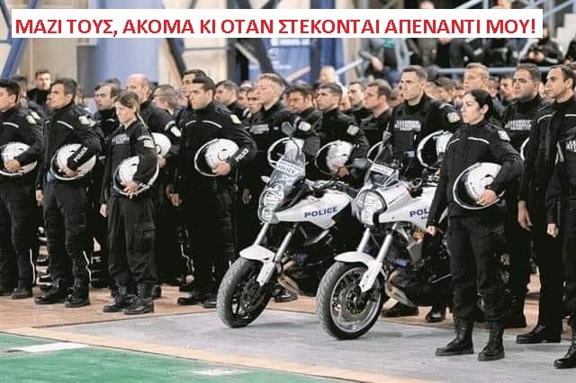 Λαοί που είδαν τον Αστυνομικό να γίνεται μπάτσος, τον Φύλακα Πραιτοριανό, τους μαφιόζους Άρχοντες και τη ζούγκλα Νόμο. Υπεύθυνοι και υπόλογοι απέναντι σε ένα τέτοιο ενδεχόμενο είμαστε όλοι εμείς που ονομάζουμε τους εαυτούς μας Πολίτες. Όλοι εμείς που νοιαζόμαστε, που μπορούμε ακόμα και ξεχωρίζουμε έννοιες, αξίες και αρχές. Ας μην παρασυρθούμε λοιπόν για άλλη μια φορά από την προπαγάνδα τους, κι ας στηρίξουμε τους άντρες και τις γυναίκες της Ελληνικής Αστυνομίας!