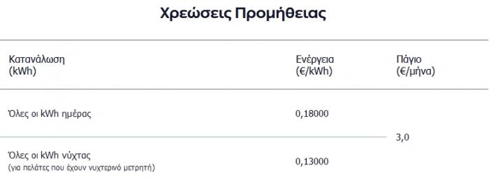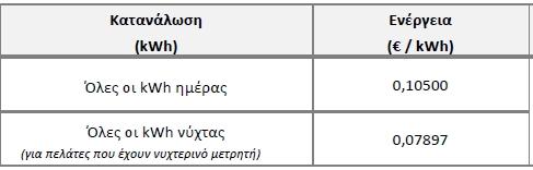 Αντίθετα, οι χρεώσεις που ισχύουν για το ίδιο πρόγραμμα έως τώρα και τις οποίες έχουν «κλειδώσει» όσοι καταναλωτές το έχουν ήδη ενεργοποιήσει, χωρίς να επηρεάζονται από τις αναπροσαρμογές, ήταν 0,105 ευρώ ανά κιλοβατώρα, όπως φαίνεται στον πίνακα της ΔΕΗ: