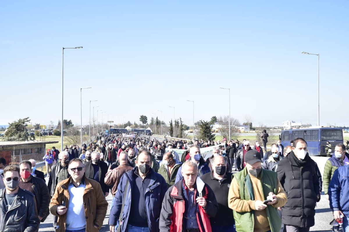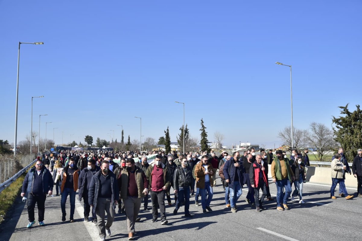 Οι αγρότες λίγο πριν τη μία το μεσημέρι συγκεντρώθηκαν στο σημείο και ξεκίνησαν με τα πόδια την πορεία για τον αποκλεισμό του δρόμου.