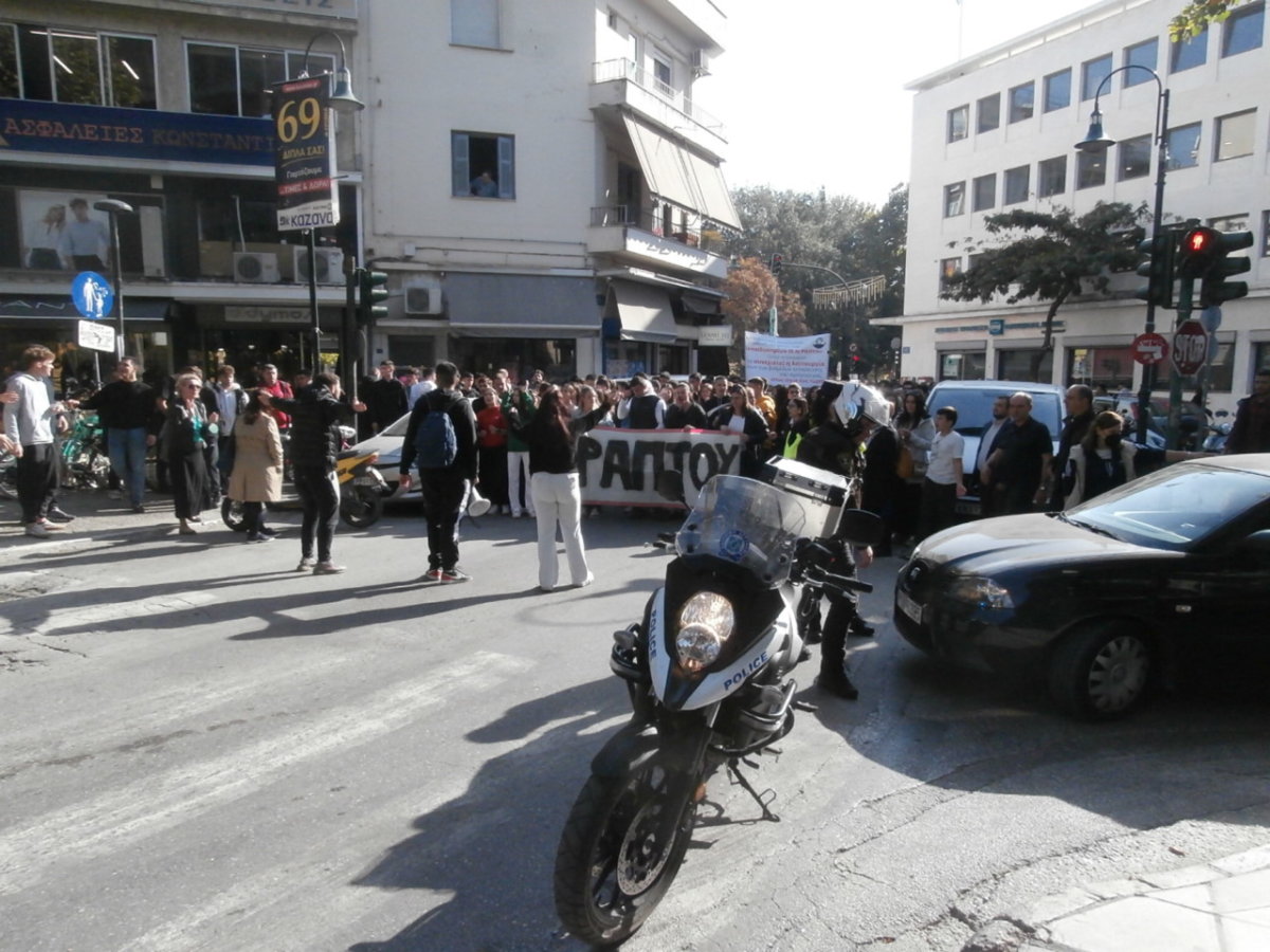 Κομφούζιο δημιουργήθηκε το πρωί στις οδούς Καρδίτσης, Ηρώων Πολυτεχνείου και Παπαναστασίου, όταν η πορεία με πανό, φωνές και συνθήματα κατευθύνθηκε προς το κέντρο της Λάρισας, με την πρώτη στάση να γίνεται στην Περιφέρεια και τα πρώτα γιουχαΐσματα στη θέα αστυνομικών δυνάμεων να δονούν την πόλη.