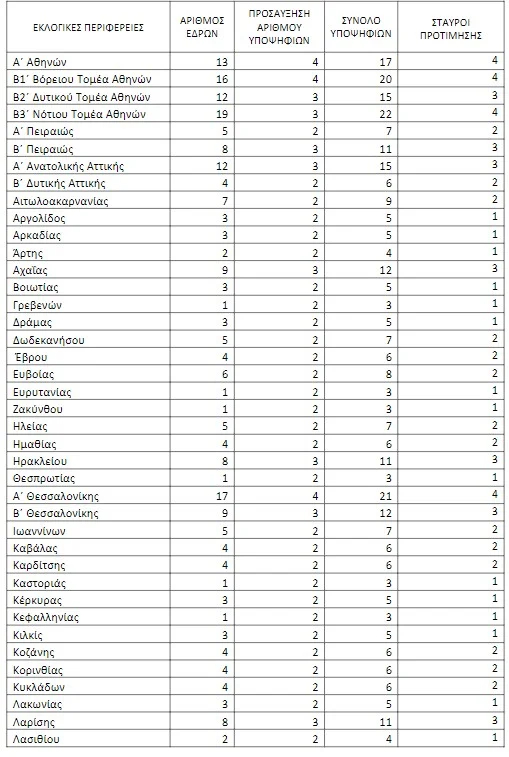Για παράδειγμα, στην Α’ Αθηνών το 2019 υπήρχαν 14 έδρες, ενώ στις εκλογές της 21ης Μαΐου, η Α’ Αθηνών θα εκλέξει 13 βουλευτές.
