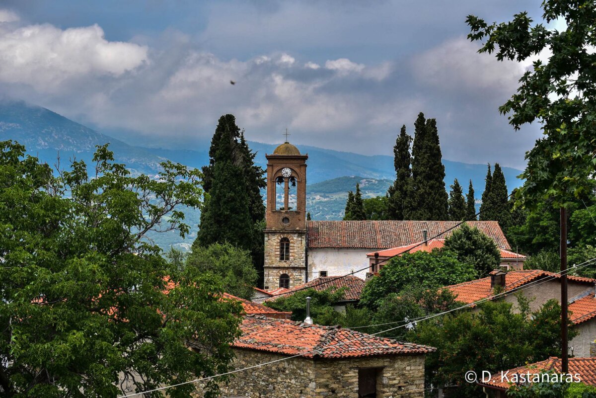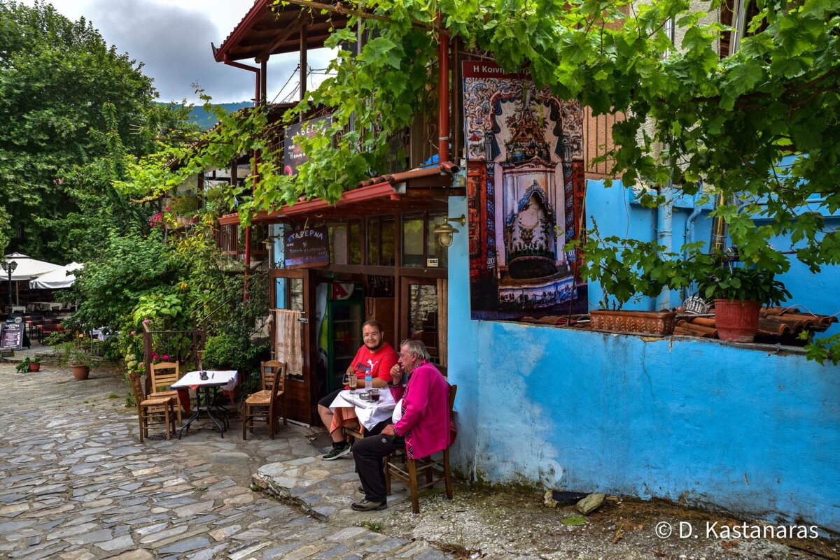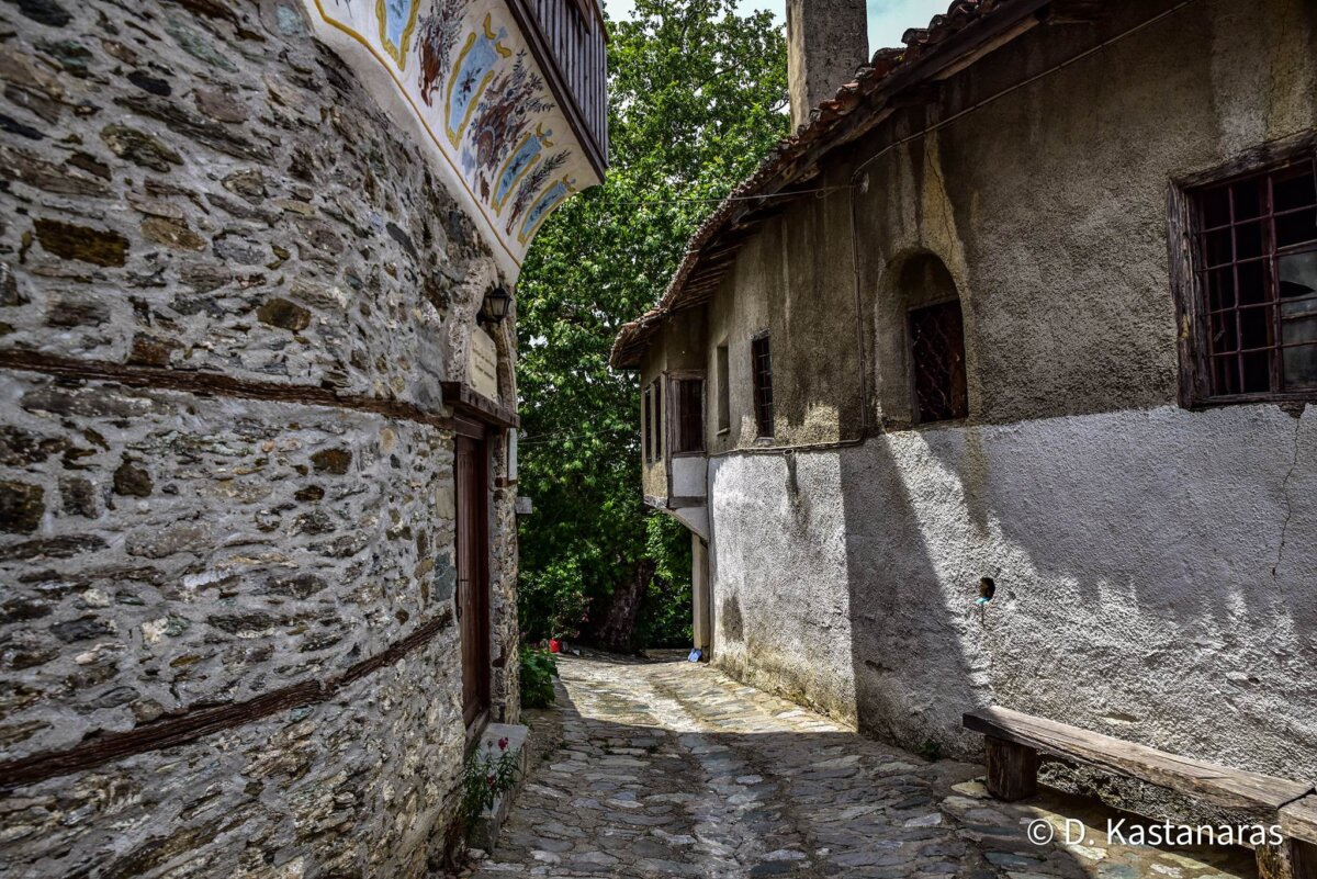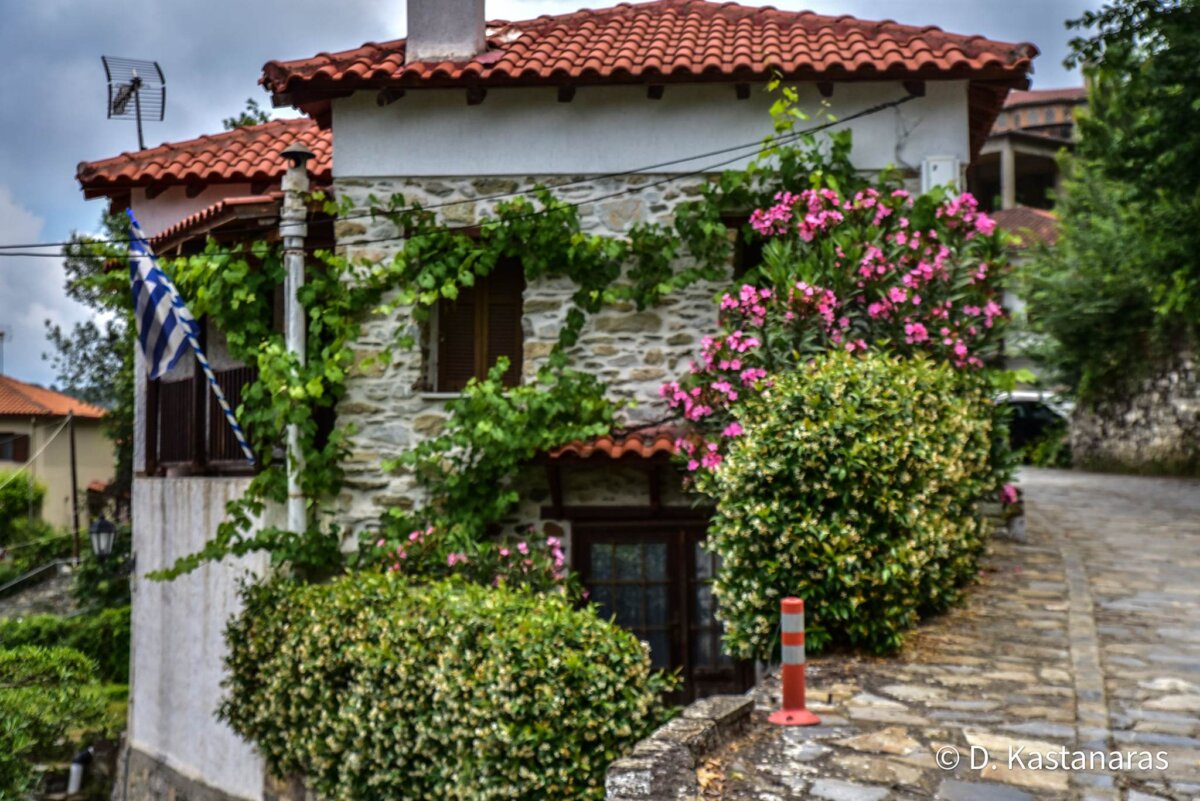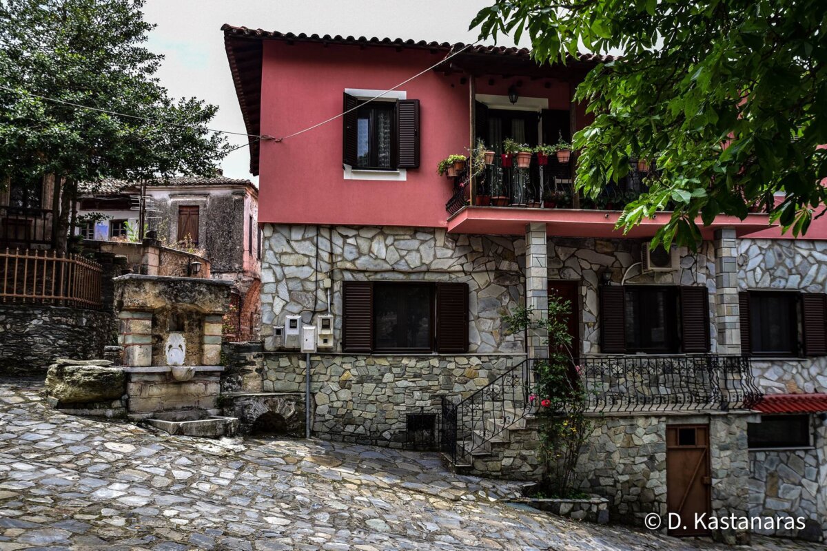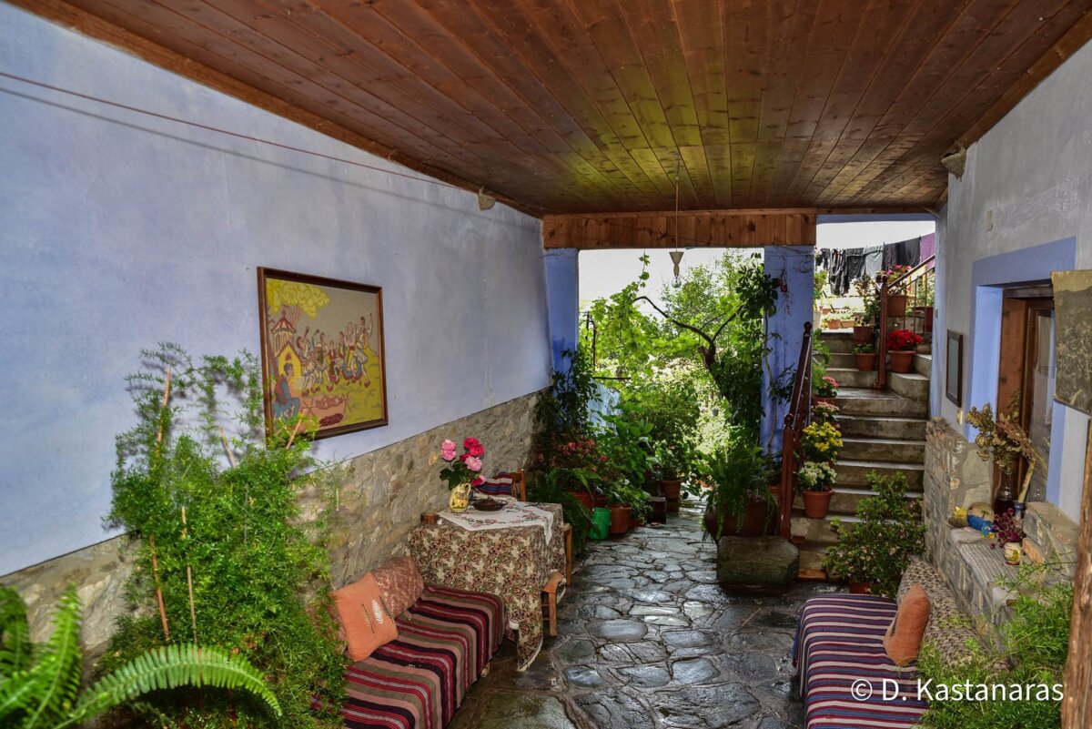 Γυρίζοντας στο σήμερα, αφήνουμε το αυτοκίνητο στην είσοδο του χωριού και συνεχίζουμε με τα πόδια στα στενά καλντερίμια του. Αυλές γεμάτες λουλούδια, παλιές ξύλινες εξώπορτες με πάντα δυο καλά κούτσουρα έξω στον δρόμο για να κάθονται οι γειτόνισσες και να κουβεντιάζουν περνώντας την ώρα τους.