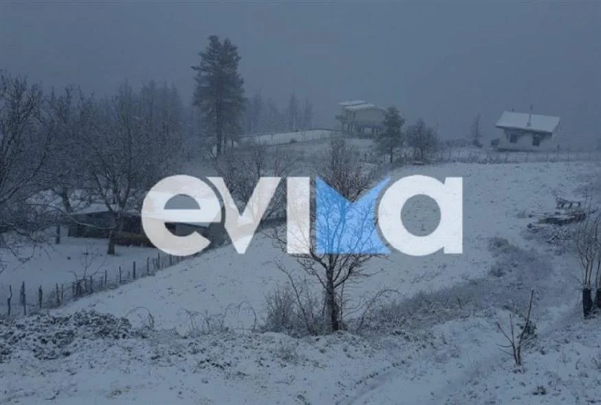 Σε λευκό κλοιό βρίσκεται η Εύβοια από το απόγευμα της Κυριακή με τα χιόνια να κάνουν την εμφάνιση του σε αρκετές περιοχές του νομού.