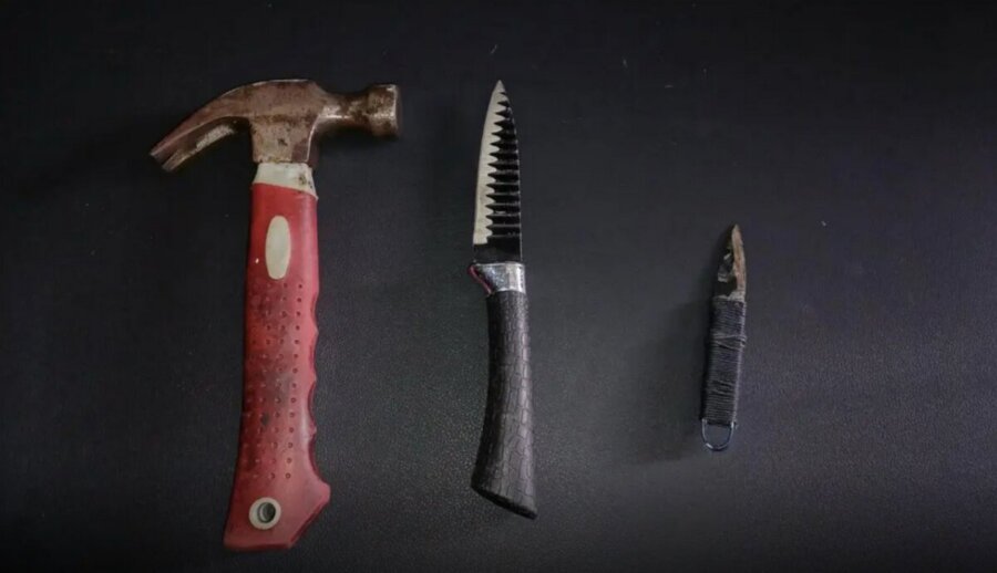 Στην του 19χρονου βρέθηκαν και κατασχέθηκαν δύο μαχαίρια, ένα σφυρί και 6,5 γραμμ. κρυσταλλικής μεθαμφεταμίνης.