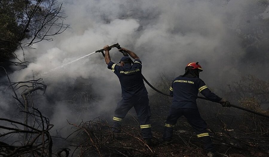 Οι πυροσβεστικές δυνάμεις δίνουν μάχη για να μην επεκταθεί η φωτιά σε κατοικημένη και δασική περιοχή.