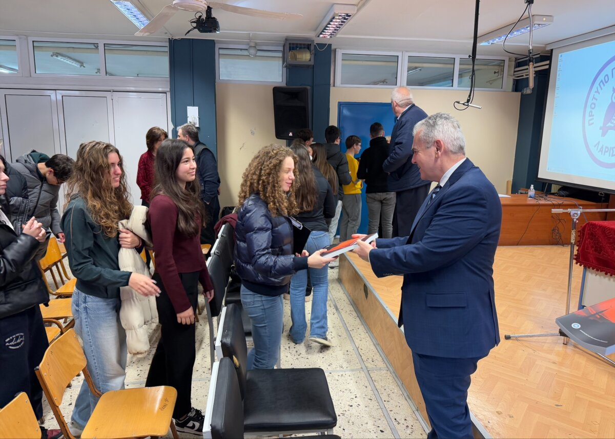 * Ο Διευθυντής του Προτύπου ΓΕΛ Λάρισας, δρ. Εκκλησιαστικής Ιστορίας Χάρης Ανδρεόπουλος και ο Σύλλογος Διδασκόντων ευχαριστούν τον κ. Χαρακόπουλο για τη συμμετοχή του στην εκπαιδευτική δράση του σχολείου καθώς και για τη διανομή του Τόμου, ως ευγενή προσφορά της Γραμματείας της Σ.Δ.Ο., στους μαθητές, τις μαθήτριες και τους εκπαιδευτικούς του σχολείου.