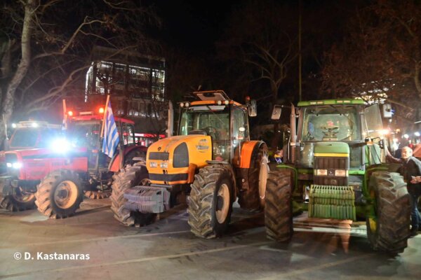 Να σημειωθεί ότι οι αγρότες, στο πλαίσιο της κινητοποίησης, έβαλαν φωτιά σε μπάλες με άχυρο.