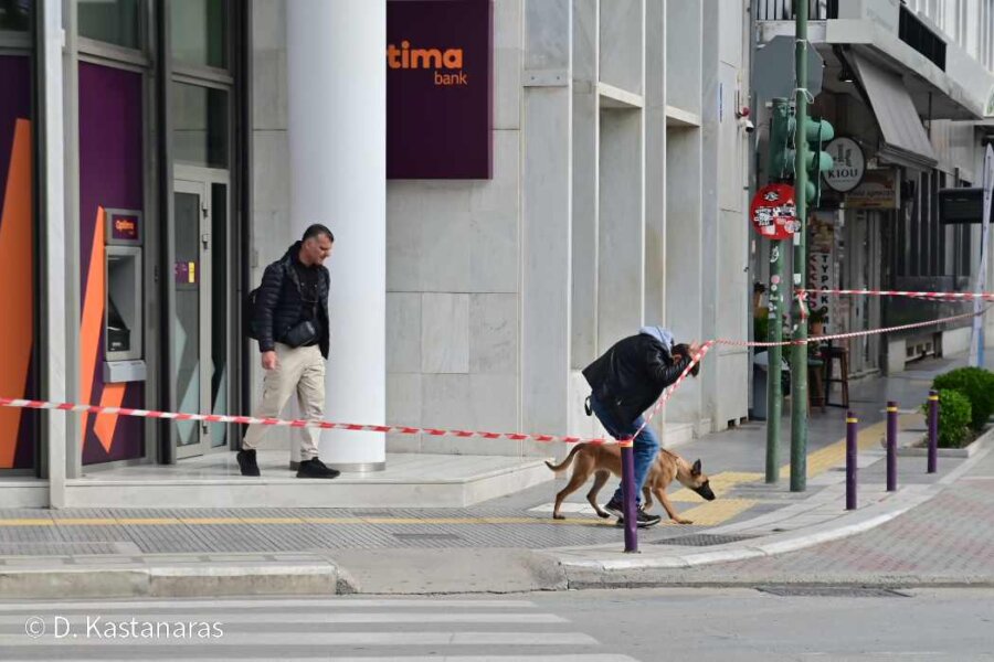 Φάρσα αποδείχθηκε το τηλεφώνημα για τοποθέτηση εκρηκτικού μηχανισμού στο τραπεζικό κατάστημα OPTIMA στο κέντρο της Λάρισας.