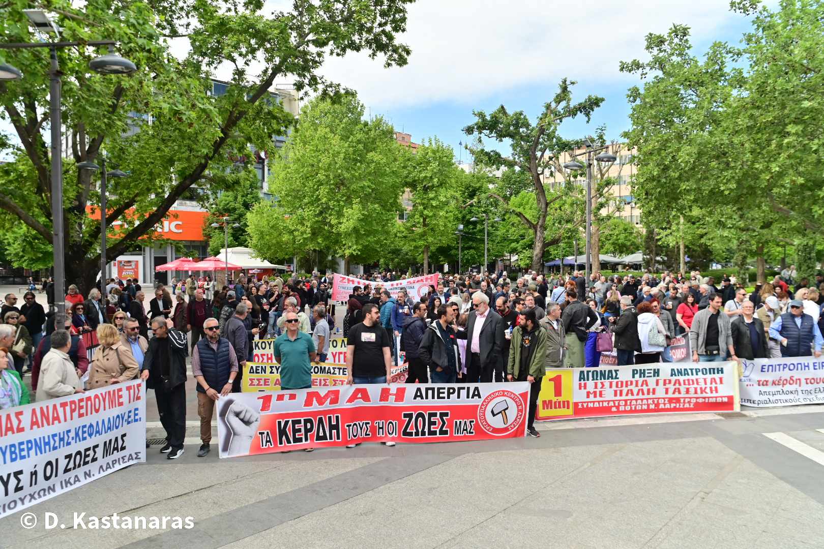 Με κεντρικό σύνθημα «Τα κέρδη τους ή οι ζωές μας» τίμησε την εργατική Πρωτομαγιά το Εργατικό Κέντρο Λάρισας, ενώ η απεργιακή συγκέντρωση πραγματοποιήθηκε το πρωί της Πέμπτης, στην κεντρική πλατεία.