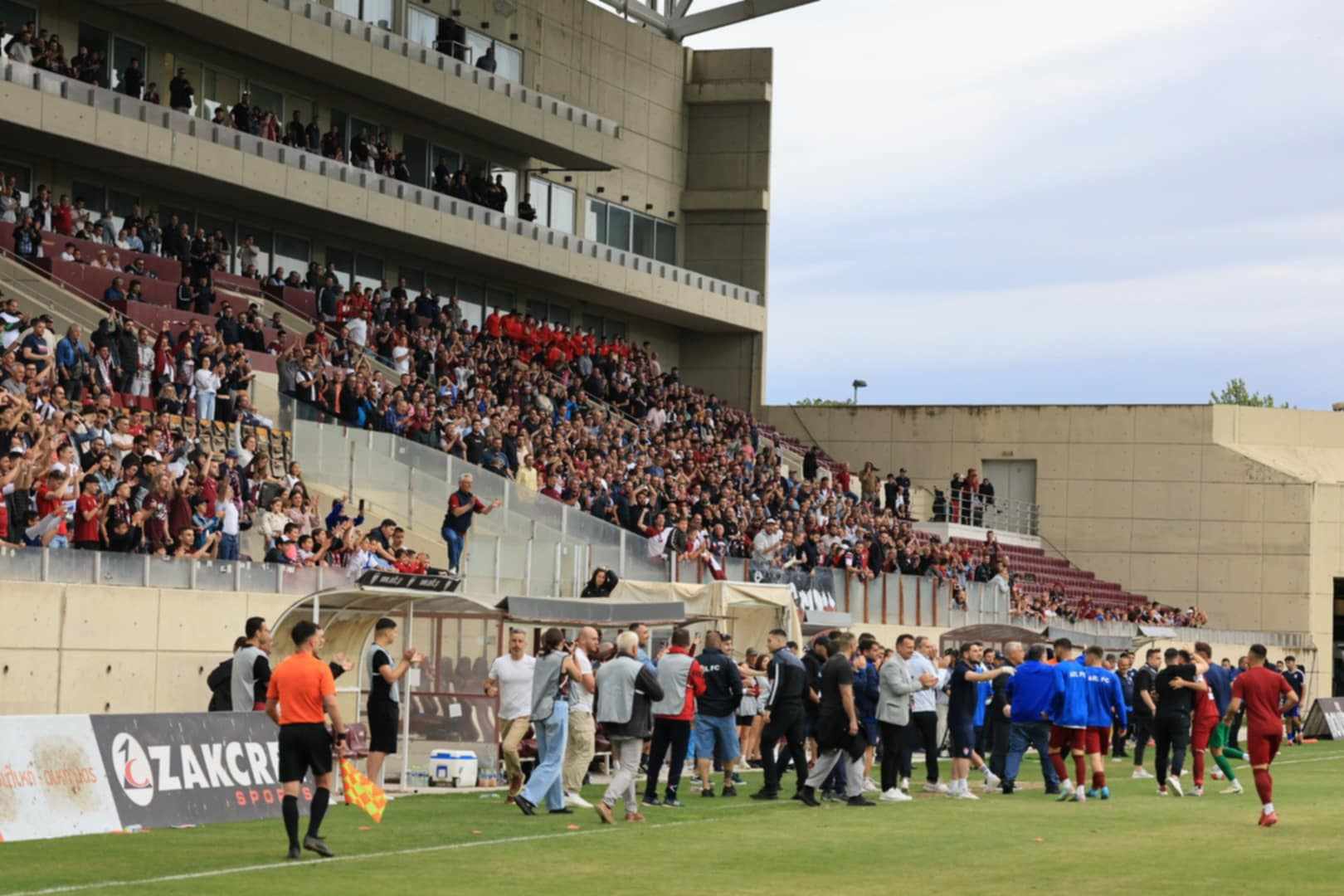 Στο 60′ οι “βυσσινι” άγγιξαν το γκολ, με τον Στίνα να δοκιμάζει το μακρινό σουτ και τον Ξενόπουλο να δηλώνει παρών, να πέφτει στη γωνία του και να λέει “όχι”, διατηρώντας ανέπαφη την εστία του.