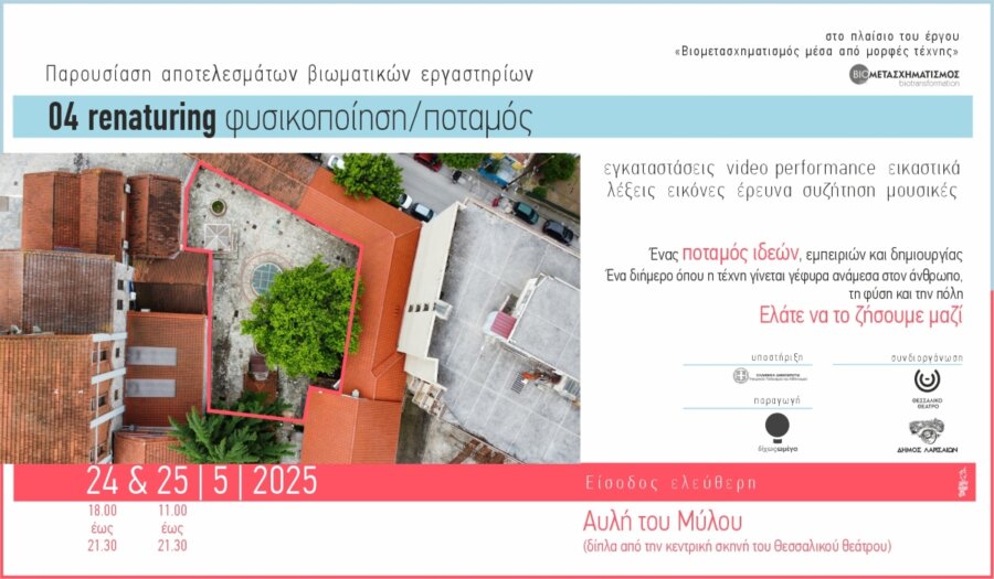 Η εν λόγω εκδήλωση αποτελεί την κορύφωση των εργαστηρίων του καλλιτεχνικού προγράμματος «04 renaturing φυσικοποίηση-ποταμός, μια περιβαλλοντική, κοινωνική και πολιτισμική προσέγγιση για την αστική φύση», που υλοποιείται στο πλαίσιο του έργου «Βιομετασχηματισμός μέσα από μορφές τέχνης».