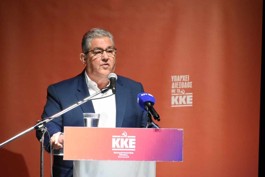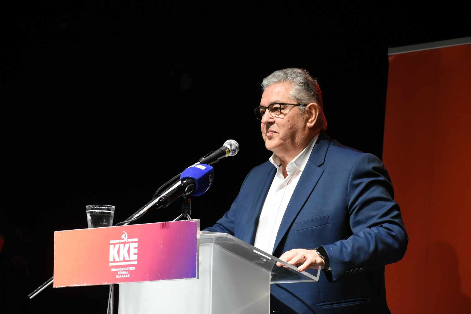 Μήνυμα επαγρύπνησης, οργάνωσης και αγώνα έστειλε σήμερα από τη Λάρισα ο ΓΓ της ΚΕ του ΚΚΕ Δημήτρης Κουτσούμπας, στο πλαίσιο εκδήλωσης που πραγματοποιήθηκε στο ΔΩΛ με τίτλο: «Καμία θυσία για τους πολέμους, τους δασμούς και τις κρίσεις του κεφαλαίου».