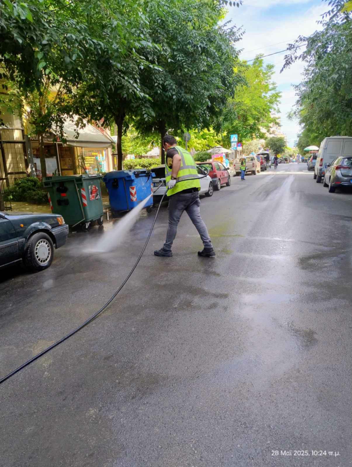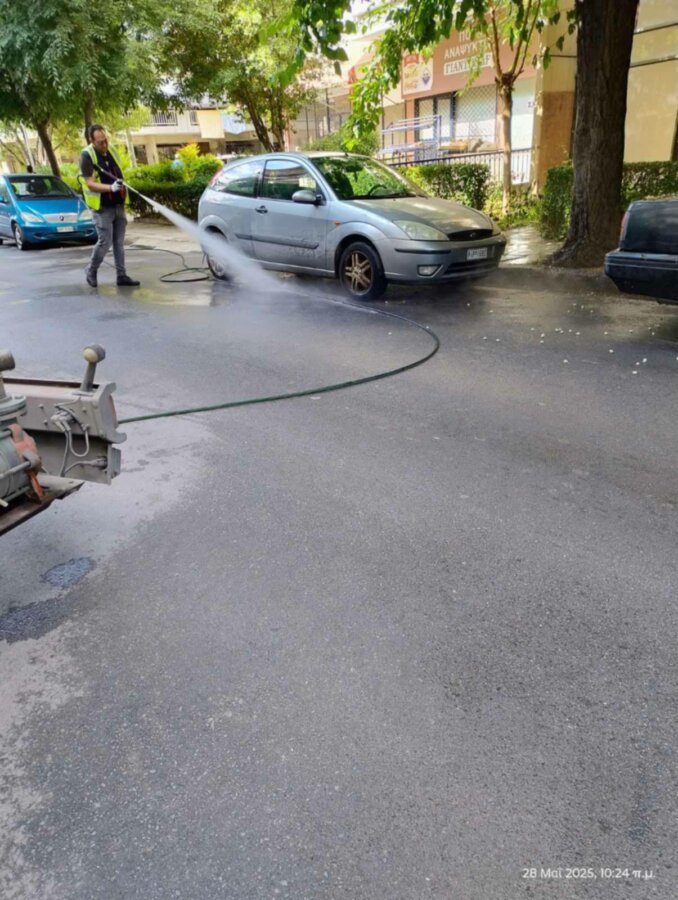 Οι αρμόδιες υπηρεσίες προχώρησαν σε εργασίες πλύσης πεζοδρομίου και δρόμου (Καραθάνου-Σκουφά).