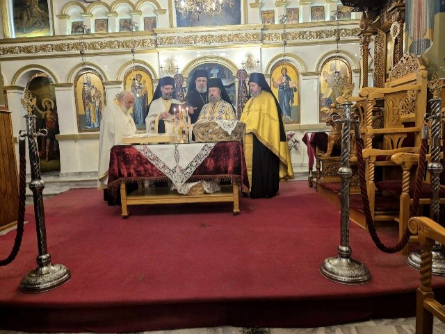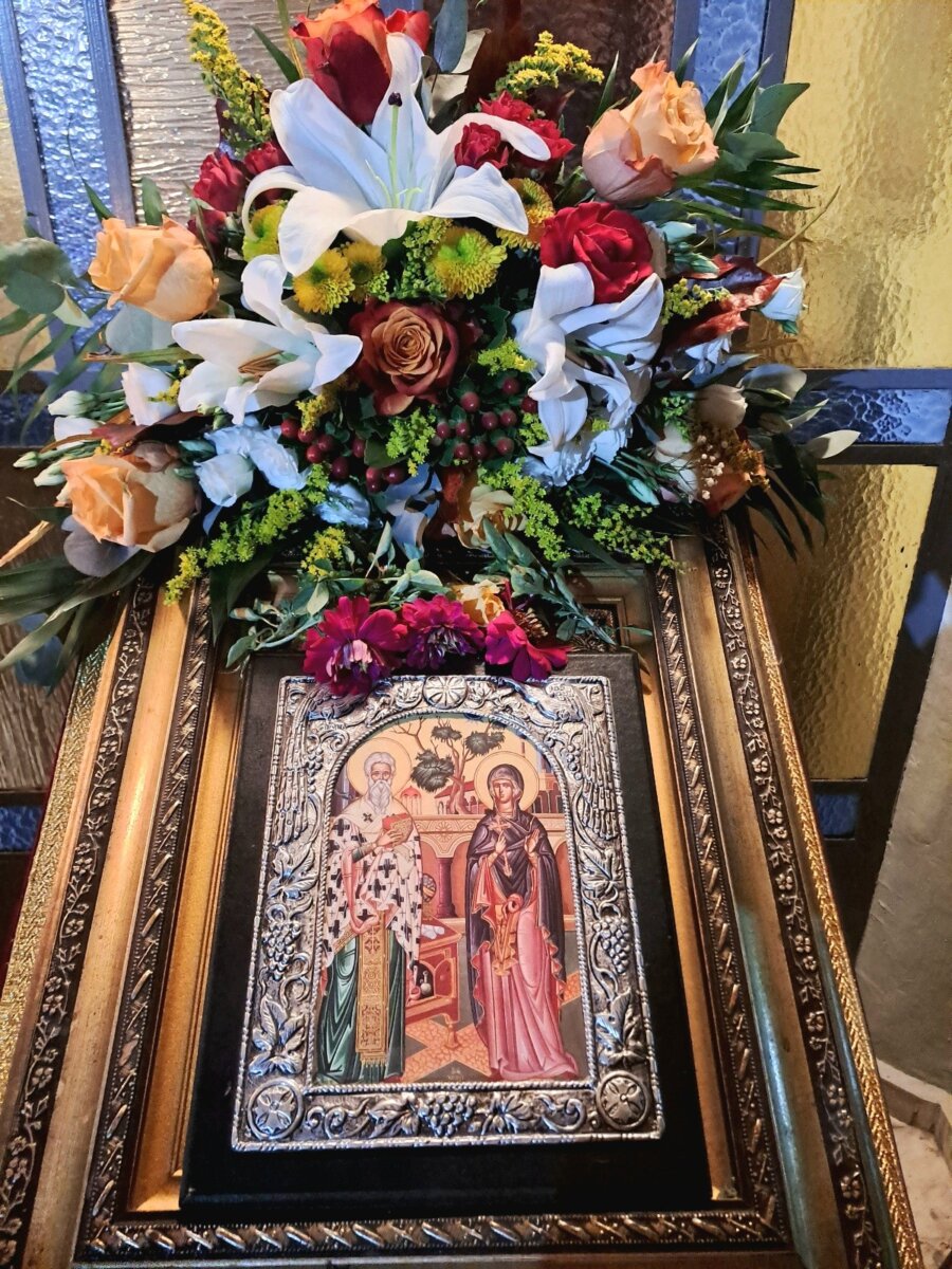 Του πανηγυρικού εσπερινού προεξήρχε ο π. Ευθύμιος, ο οποίος κήρυξε τον θείο λόγο, συλλειτουργούντος με τους πατέρες Γεώργιο, Πορφύριο, Ιερόθεο και τον ιερέα του χωριού π. Αθηναγόρα. Κατά τη διάρκεια του εσπερινού πραγματοποιήθηκε αρτοκλασία, ευλογήθηκαν τα κόλλυβα των Αγίων, ενώ προ της απολύσεως έγινε περιφορά της Ιεράς Εικόνας των Αγίων Κυπριανού και Ιουστίνης πέριξ του ναού. Μετά την απόλυση δόθηκε σε όλους τους πιστούς ως ευλογία άρτος, κόλλυβα και εδέσματα προσφορά του Ιερού Ναού.