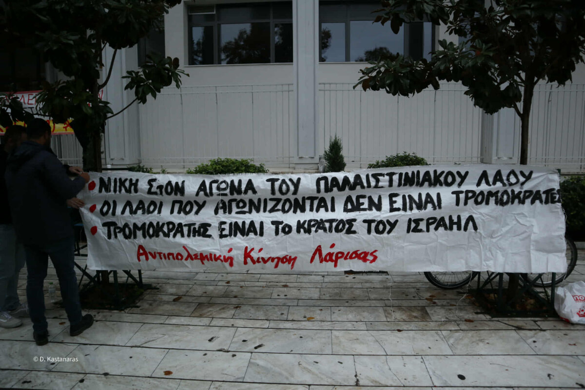 Η κινητοποίηση πραγματοποιήθηκε με πρωτοβουλία της Αντιπολεμικής Κίνησης Λάρισας και με τη συμμετοχή συλλογικοτήτων και κομμάτων, ενώ ολοκληρώθηκε με πορεία στο κέντρο της πόλης.