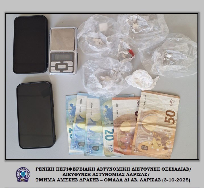 Συνελήφθησαν, χθες (2-10-2025) το βράδυ στη Λάρισα, από αστυνομικούς της Ομάδας Δίκυκλης Αστυνόμευσης (ΔΙ.ΑΣ.) Λάρισας, -2- ημεδαποί, εκ των οποίων ο ένας ανήλικος, για παράβαση της νομοθεσίας περί ναρκωτικών.