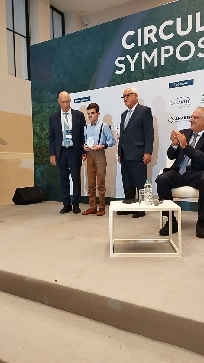 Τη βράβευση του μαθητή έκανε ο Υπουργός Ανάπτυξης κ. Τάκης Θεοδωρικάκος στο Ζάππειο Μέγαρο και το νικητήριο μουσικό θέμα ¨Walzofthewind¨ παρουσιάστηκε ως ο επίσημος ύμνος του συμποσίου και θα συνοδεύει κάθε Circular Gaia Symposium στο μέλλον.
