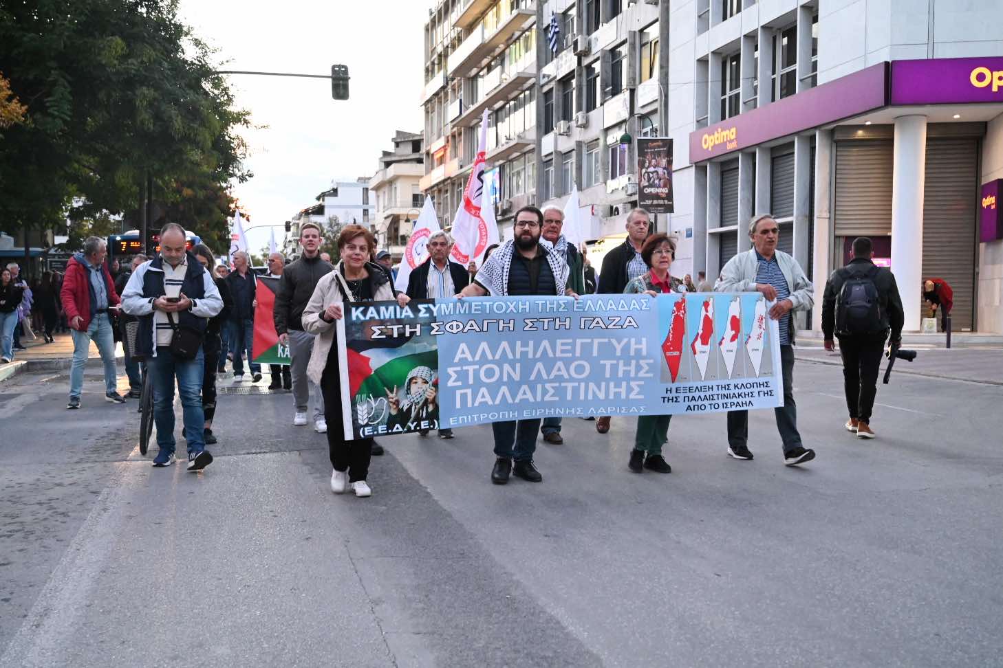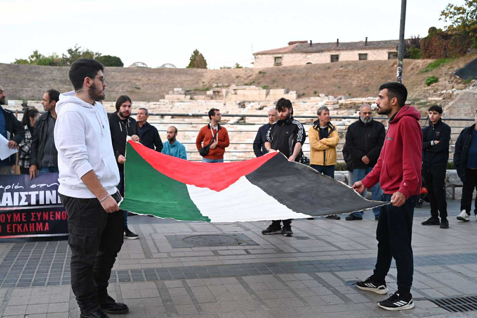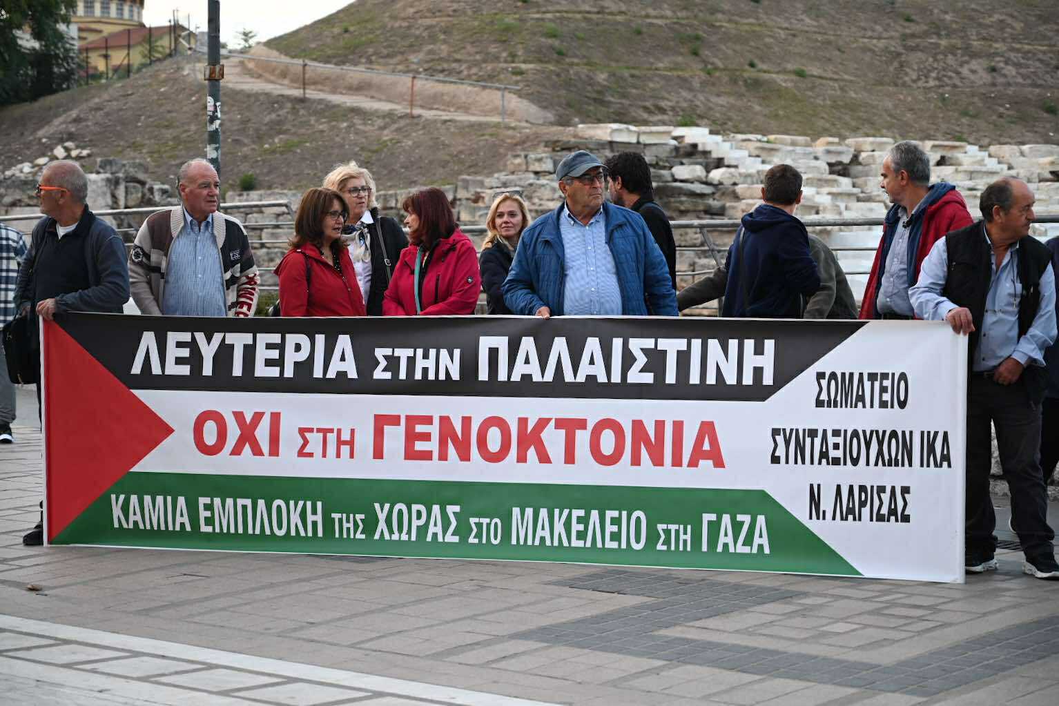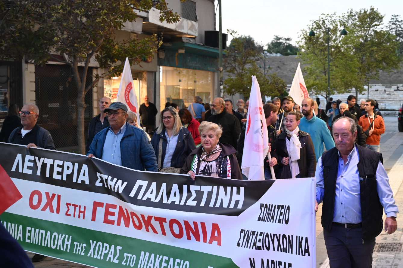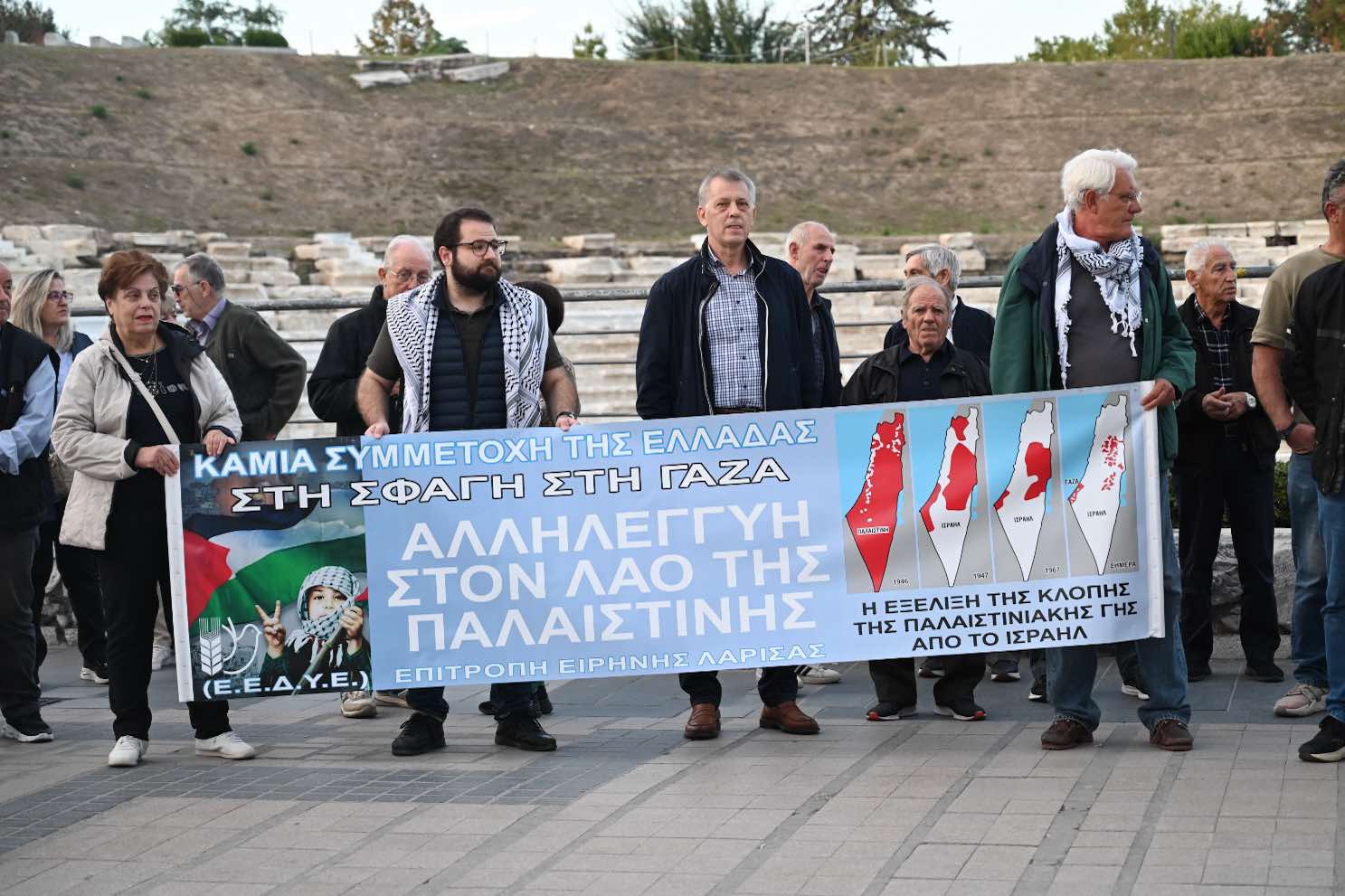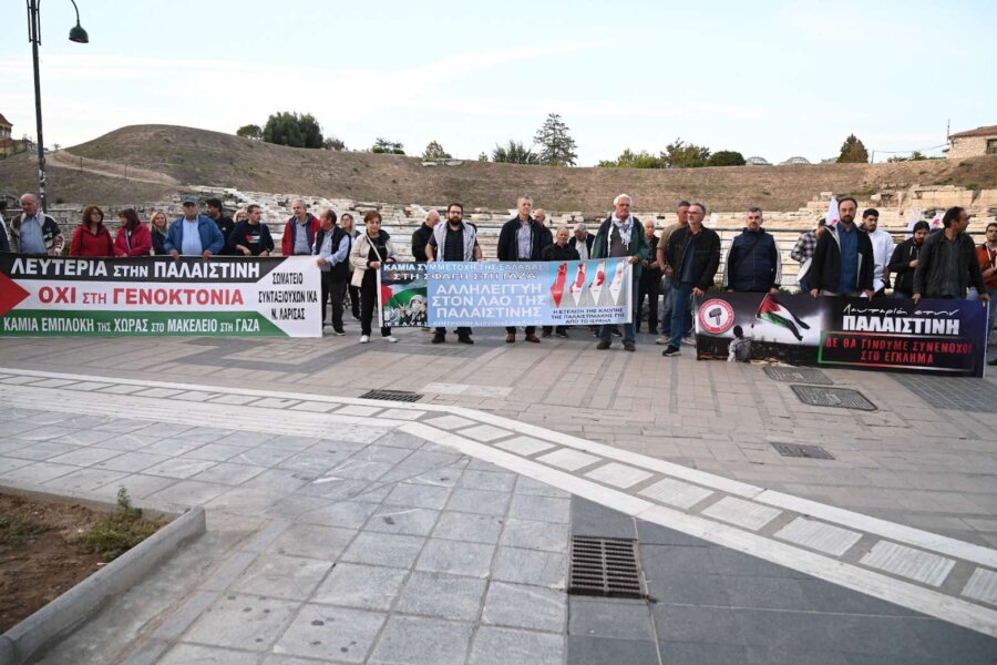 Συγκέντρωση αλληλεγγύης υπέρ του παλαιστινιακού λαού πραγματοποιήθηκε το απόγευμα της Παρασκευής μπροστά στο Α΄ Αρχαίο Θέατρο, από το Εργατικό Κέντρο και την Επιτροπή Ειρήνης Λάρισας ενώ στη συνέχεια ακολούθησε πορεία στους δρόμους της πόλης.