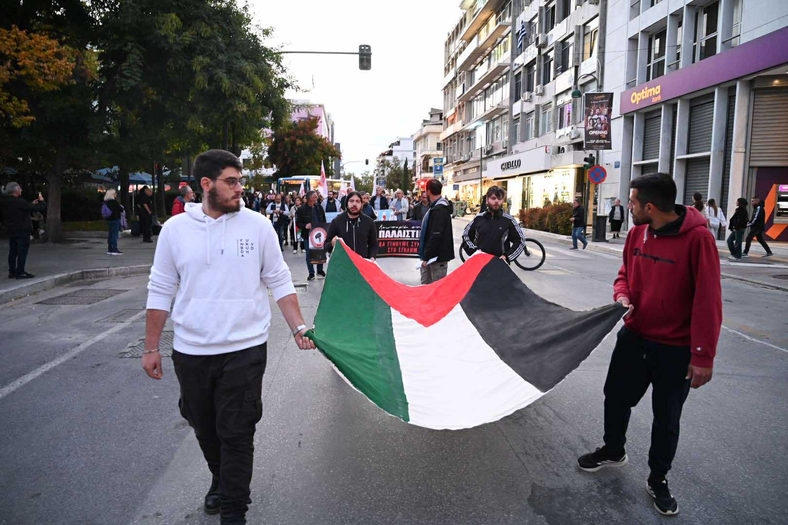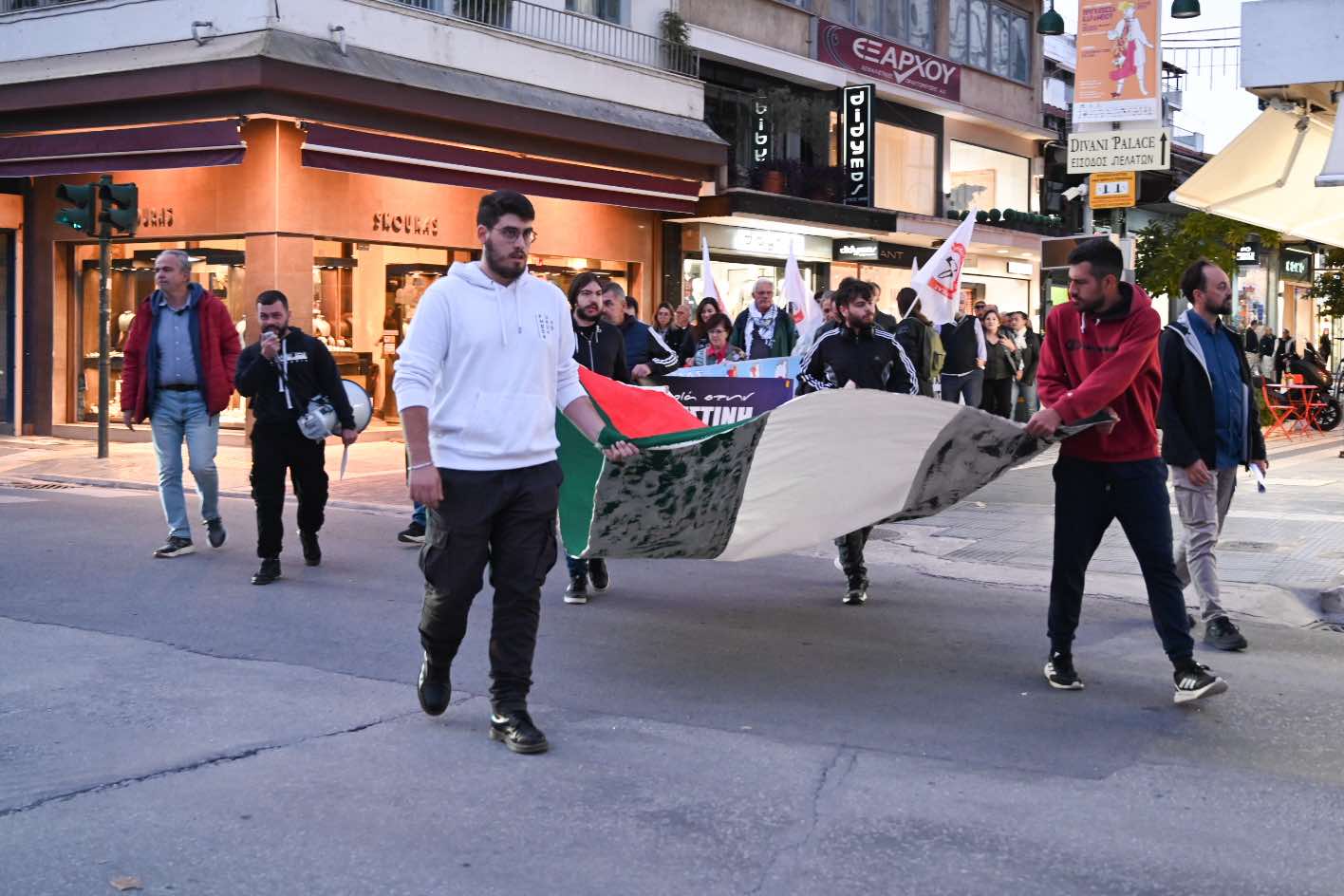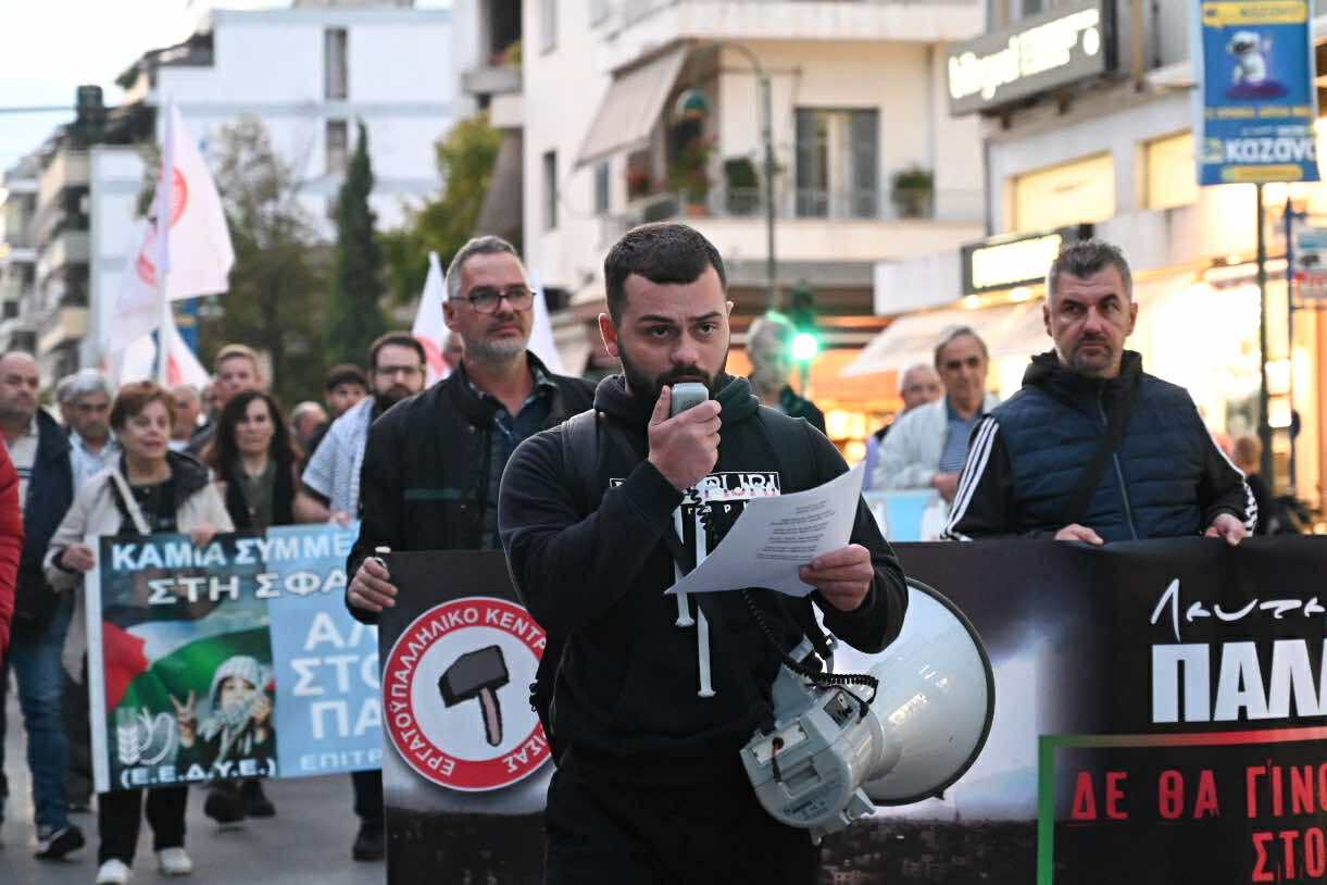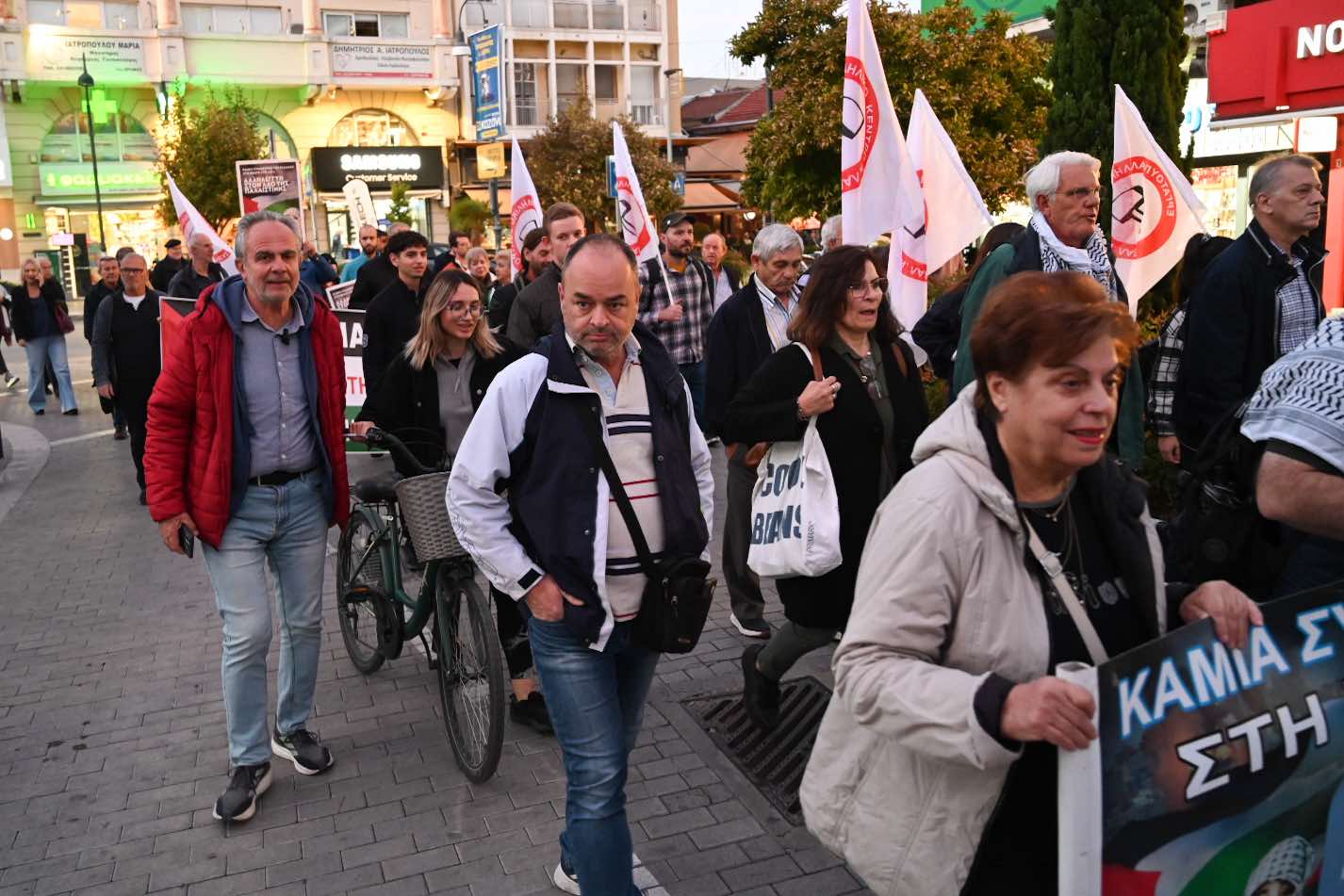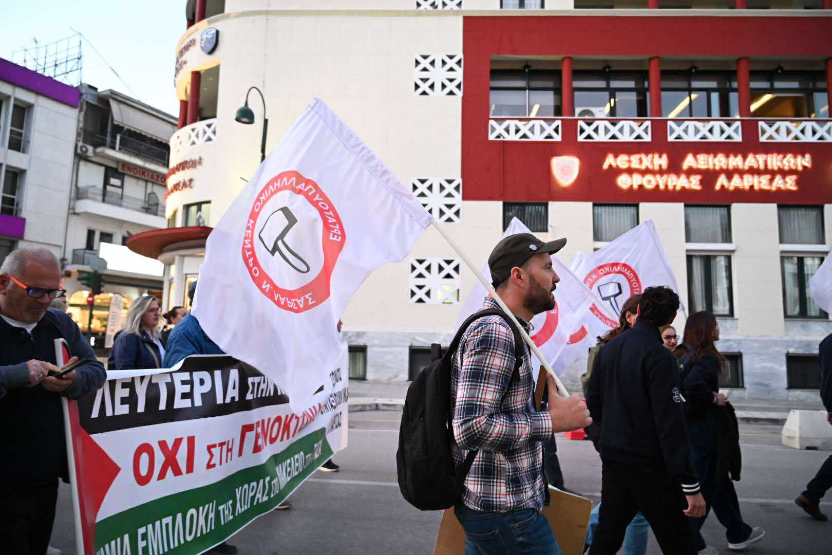 Συγκέντρωση αλληλεγγύης υπέρ του παλαιστινιακού λαού πραγματοποιήθηκε το απόγευμα της Παρασκευής μπροστά στο Α΄ Αρχαίο Θέατρο, από το Εργατικό Κέντρο και την Επιτροπή Ειρήνης Λάρισας ενώ στη συνέχεια ακολούθησε πορεία στους δρόμους της πόλης.