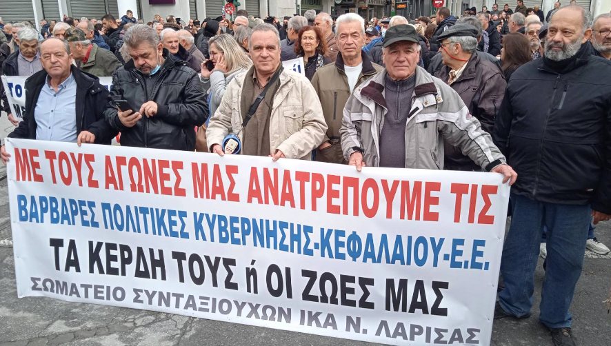 “Δυναμώνει η αγανάκτησή μας που τα τελευταία 15 χρόνια, η Κυβέρνηση της ΝΔ, μαζί και οι προηγούμενες, ψήφισαν τρία μνημόνια και εκατοντάδες αντεργατικούς νόμους, υλοποιώντας τις αποφάσεις και τις οδηγίες της ΕΕ. Μας άρπαξαν πάνω από 150 δις από τις συντάξεις μας, μας έκλεψαν την 13η και 14η σύνταξη, μας κατήργησαν το ΕΚΑΣ, μας επέβαλαν την προσωπική διαφορά, την εισφορά αλληλεγγύης, μας πετσόκοψαν τις επικουρικές συντάξεις, και έκαναν τη σύνταξή μας να τελειώνει στο πρώτο 10ήμερο από την τεράστια ακρίβεια.