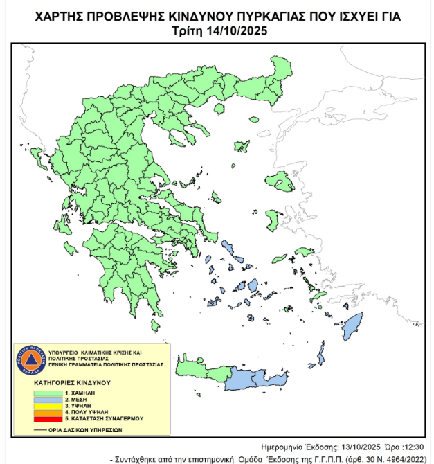 Σύμφωνα με τον Χάρτη, ο κίνδυνος πυρκαγιάς στην περιοχή μας, είναι χαμηλός.