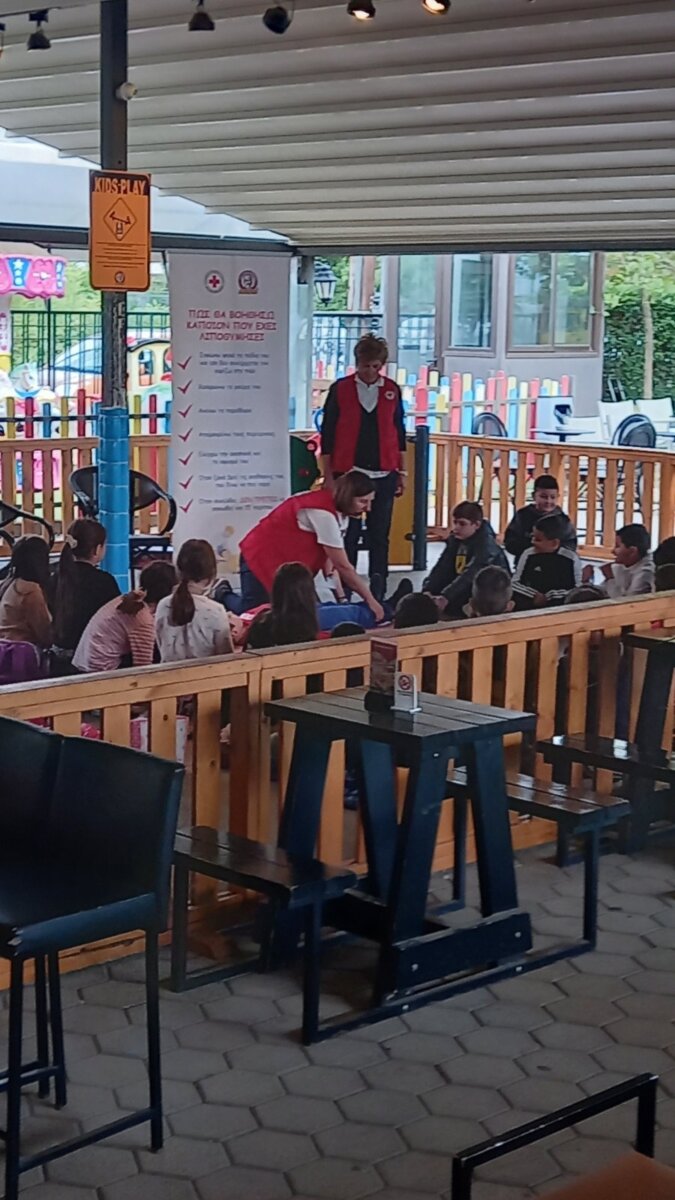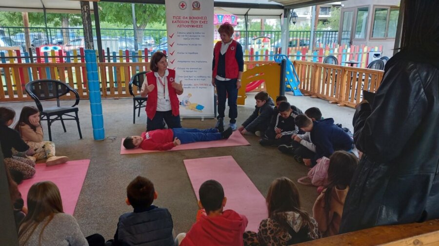 Α. Εκπαιδευτική δράση για μαθητές/τριες Γ΄ και Δ΄ Δημοτικού με τίτλο: «Γίνε Ήρωας Πρώτων Βοηθειών – Μικροί και Μεγάλοι Σώζουν Ζωές», με στόχο την επαφή με τις βασικές αρχές Πρώτων Βοηθειών με διαδραστικό και ψυχαγωγικό τρόπο. Δομή Προγράμματος: 1. Εισαγωγική Παρουσίαση από τον Ερυθρό Σταυρό με απλό και κατανοητό λόγο, διανθισμένη με ερωτήσεις/κουίζ.2. Βιωματικοί Σταθμοί (4×15’ σε κυκλική ροή). Σταθμός Α: «Δέσιμο Σαν Ήρωας» – Μαθαίνουμε να περιποιούμαστε τραύματα. Σταθμός Β: «Σωστή Κλήση – 166» – Παιχνίδι ρόλων για σωστή επικοινωνία με τις υπηρεσίες. Σταθμός Γ: «Μπουκιά SOS!» – Εκπαίδευση σε πνιγμονή και Heimlich.Σταθμός Δ: «Σώσε το Αρκουδάκι!» – Εκμάθηση βασικών κινήσεων ΚΑΡΠΑ.