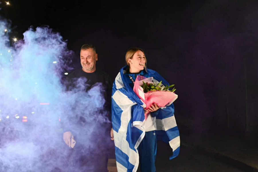 Στο φωτογραφικό στιγμιότυπο της LarissaPress διακρίνεται ο προπονητής και πατέρας της νεαρής πρωταθλήτριας, κ. Απόστολος Ιακωβάκης, περήφανος και συγκινημένος — τόσο ως πατέρας όσο και ως καθοδηγητής της στην πορεία της προς την κορυφή.