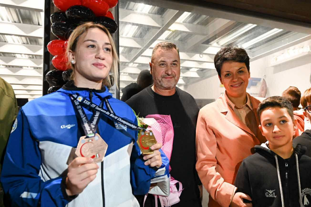 Συγκινητικές στιγμές εκτυλίχθηκαν το χθεσινό βράδυ έξω από το προπονητήριο του Αθλητικού Συλλόγου Ταεκβοντό Λάρισας, όπου τιμήθηκε η αθλήτρια Χριστιάνα Ιακωβάκη για την κατάκτηση της τρίτης θέσης στο Παγκόσμιο Πρωτάθλημα Ταεκβοντό ITF.