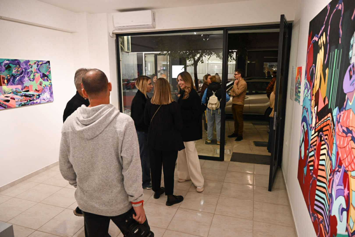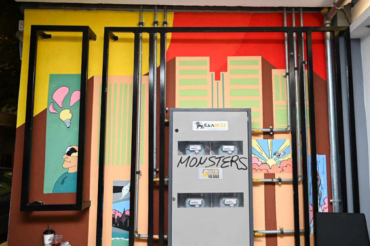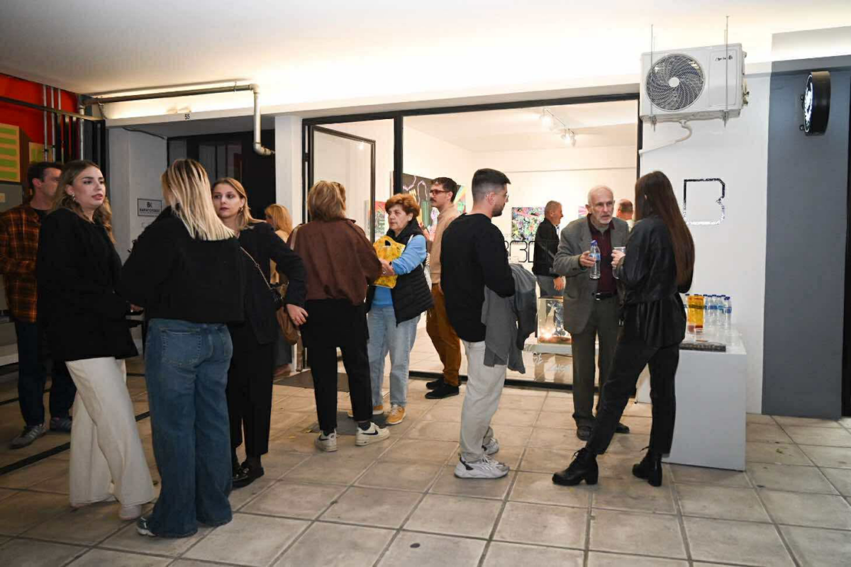 Παράλληλα, παρουσιάστηκε και η τοιχογραφία που δημιούργησε ο εικαστικός στον εξωτερικό χώρο του κτιρίου όπου στεγάζεται η γκαλερί: