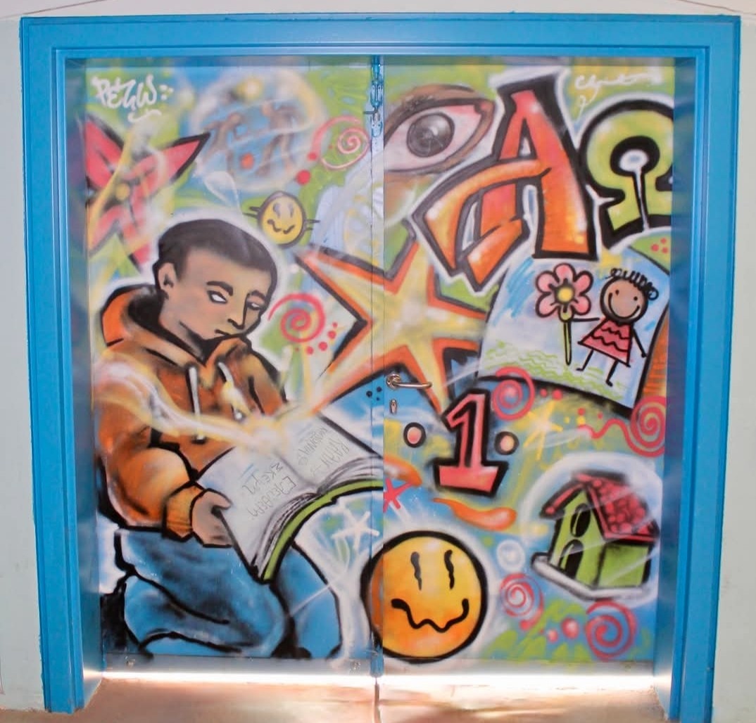 Εκεί δεν πήγαμε μόνοι, είχαμε μαζί μας τους καλλιτέχνες της ομάδας «project Ιππόκαμπος», οι οποίοι και ζωγράφισαν την πόρτα της εξόδου προς το προαύλιο. Ήταν ένα μικρό «δώρο» που θέλαμε να κάνουμε σε αυτούς τους ανθρώπους, δίνοντας λίγο χρώμα στο χώρο τους .. Το έργο θα βρίσκεται εκεί για να υπενθυμίζει σε όλους πως η τέχνη, όπως και η εκπαίδευση, έχει τη δύναμη να μεταμορφώνει χώρους, αλλά κυρίως ανθρώπους!