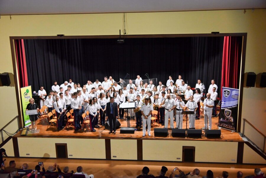 Στην κατάμεστη αίθουσα θεάτρου «Δημάρχου Βασιλείου Φαρμάκη» στην Ελασσόνα πραγματοποιήθηκε το βράδυ του Σαββάτου 4 Οκτωβρίου 2025 η εντυπωσιακή συναυλία της Μπάντας του Πολεμικού Ναυτικού, με τίτλο «Βίρα τις Άγκυρες!», σε σύμπραξη με τη Φιλαρμονική Ορχήστρα του Δήμου Ελασσόνας.