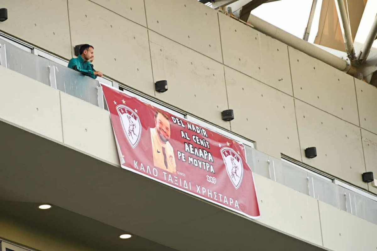 Ανάλογη η εικόνα και στις κερκίδες των οργανωμένων, με όλους να αποχαιρετούν έναν χαμογελαστό άνθρωπο και έναν παθιασμένο οπαδό της ΑΕΛ.