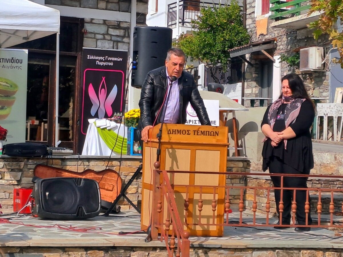 Στον χαιρετισμό του, ο Δήμαρχος Τεμπών κ. Γιώργος Μανώλης τόνισε τη σημασία της γιορτής ως αναγνώρισης της προσπάθειας των ανθρώπων της παραγωγής, κάνοντας ειδική αναφορά στα προβλήματα που αντιμετωπίζουν οι αγρότες και οι κτηνοτρόφοι της περιοχής: