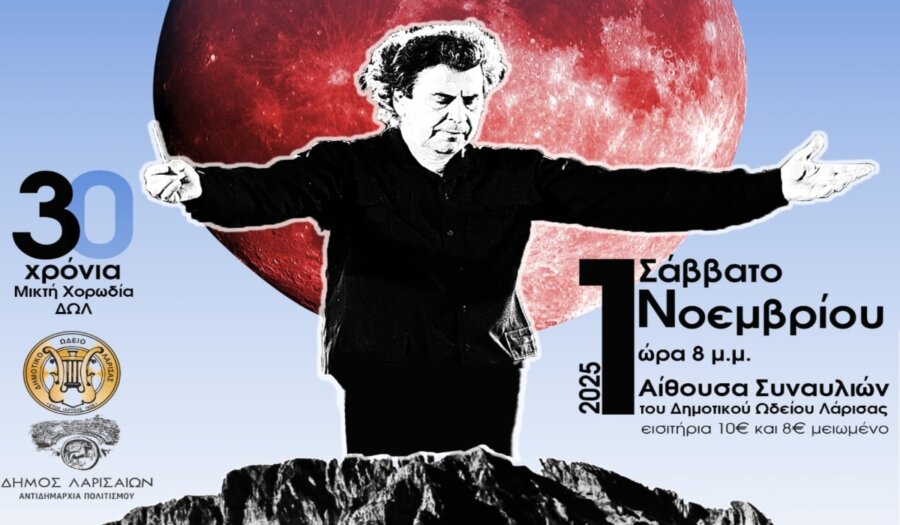 Η συναυλία, φόρος τιμής στη διαχρονική μουσική κληρονομιά ενός συνθέτη που με τη ζωή και το έργο του σημάδεψε την πολιτιστική ταυτότητα της Ελλάδας, θα πραγματοποιηθεί το Σάββατο 1η Νοεμβρίου 2025, στις 8:00 μ.μ., στην Αίθουσα Συναυλιών του Δημοτικού Ωδείου Λάρισας.