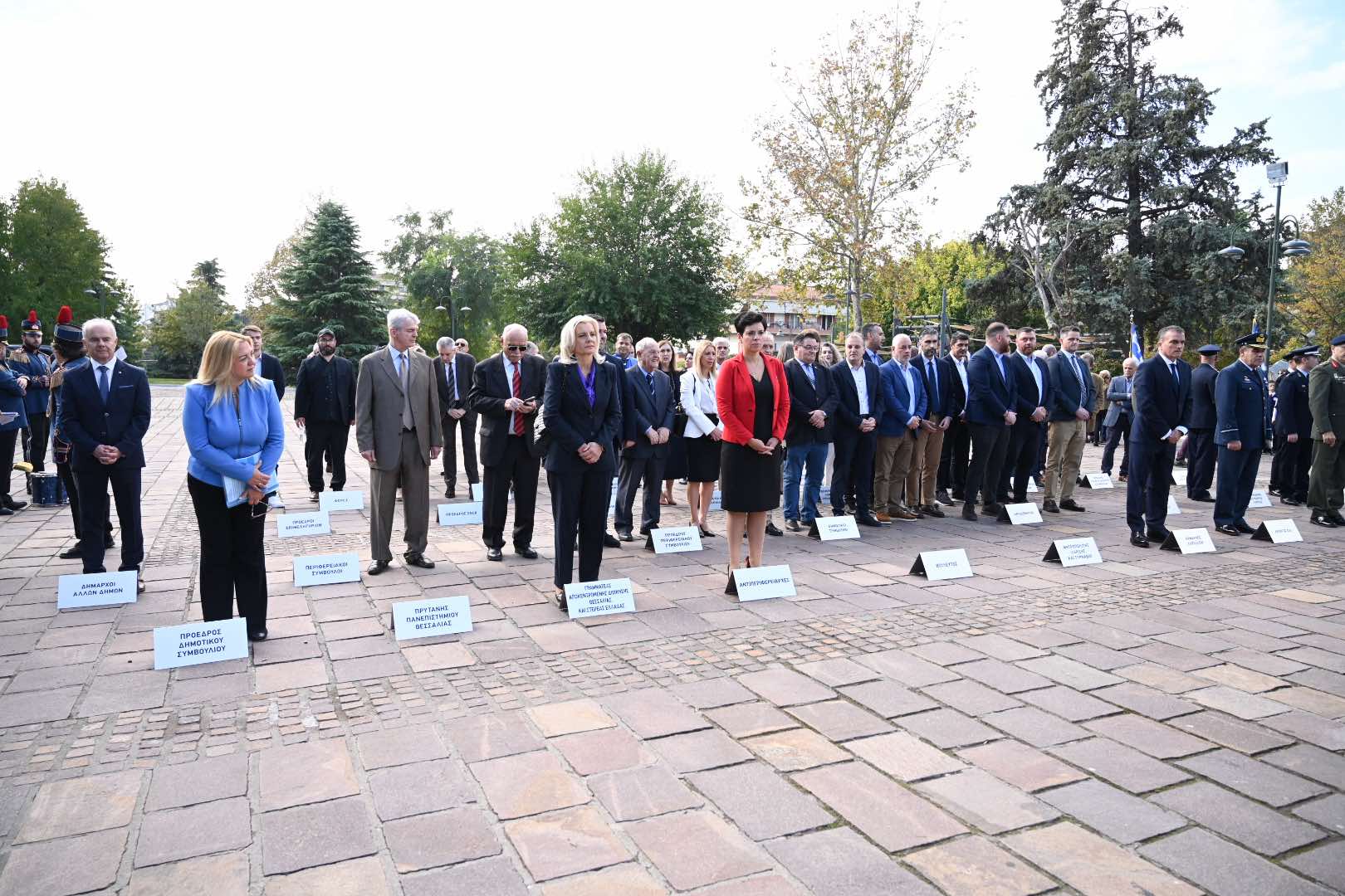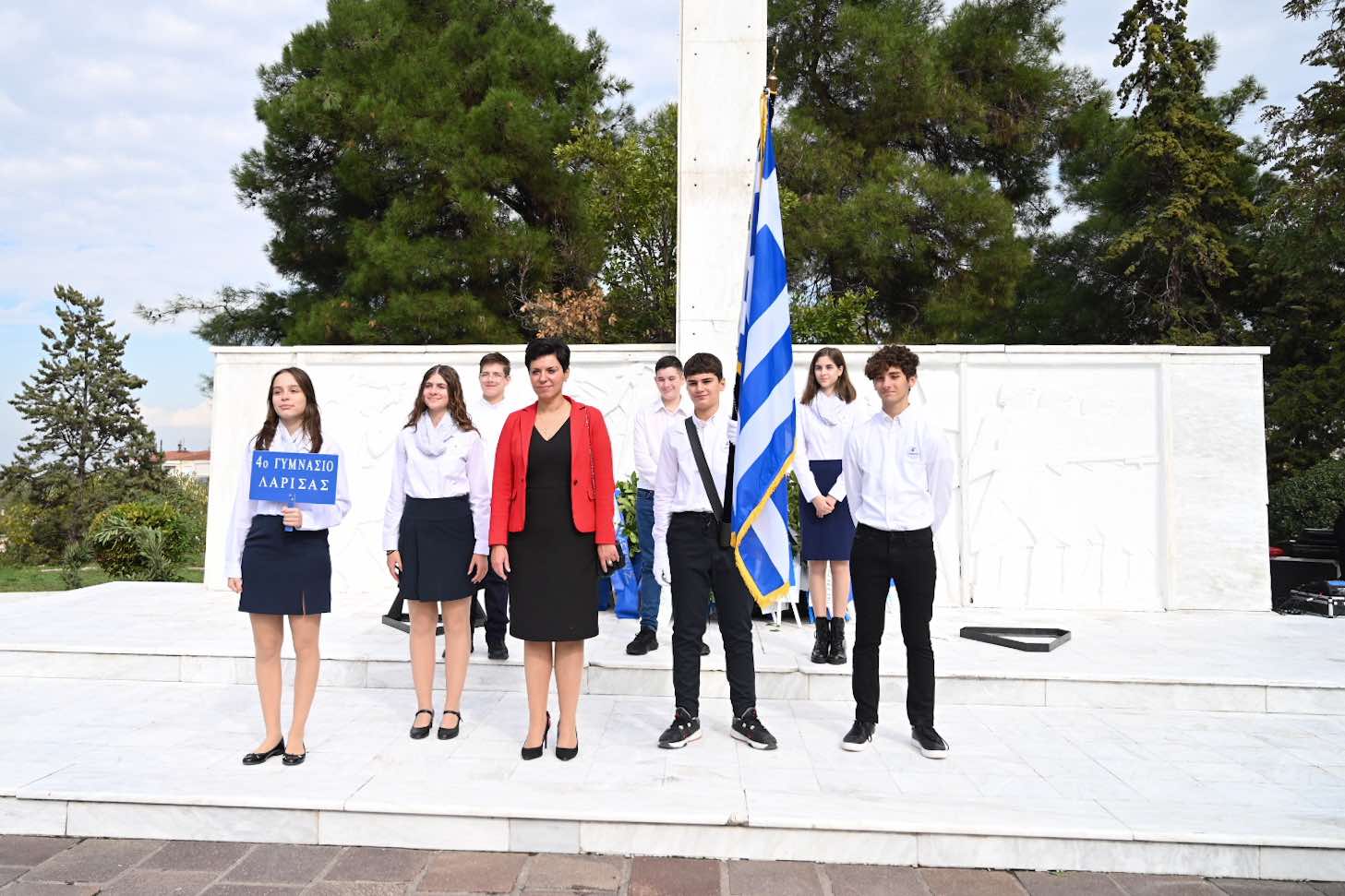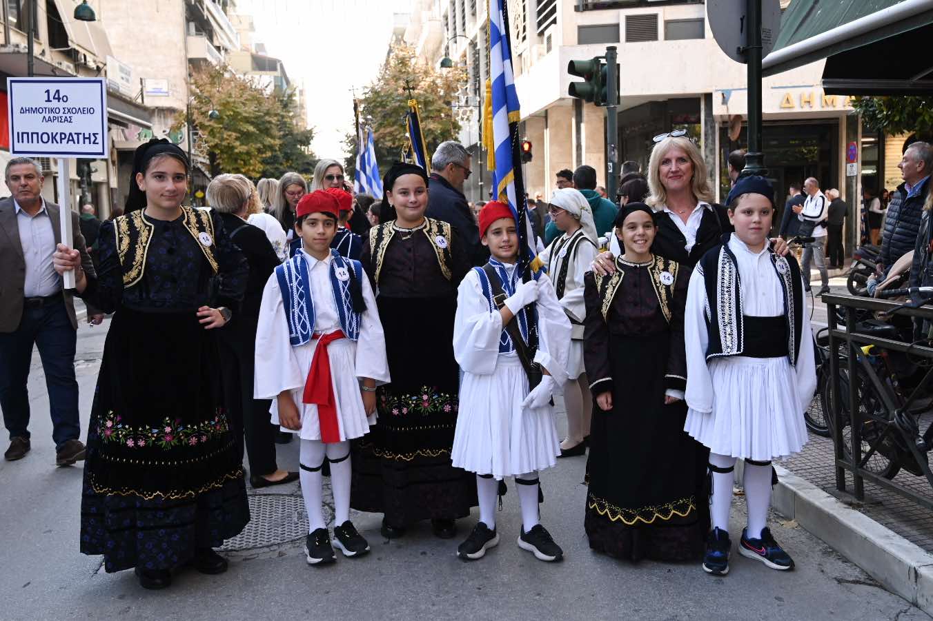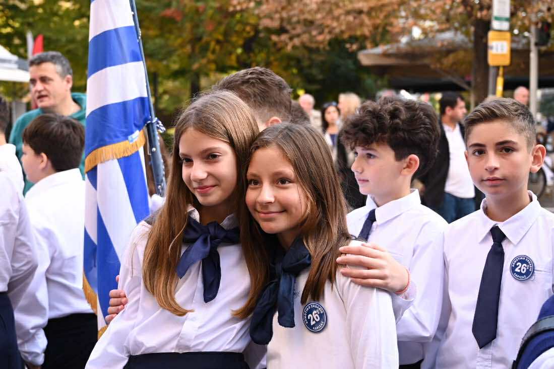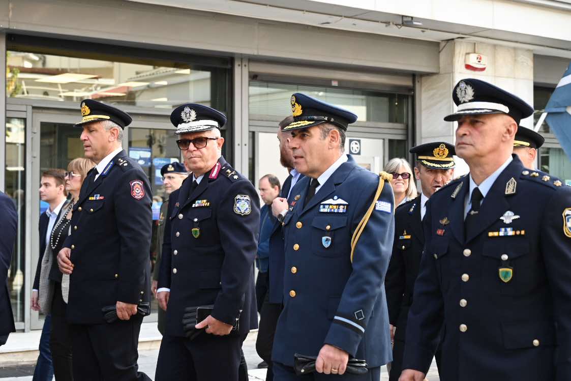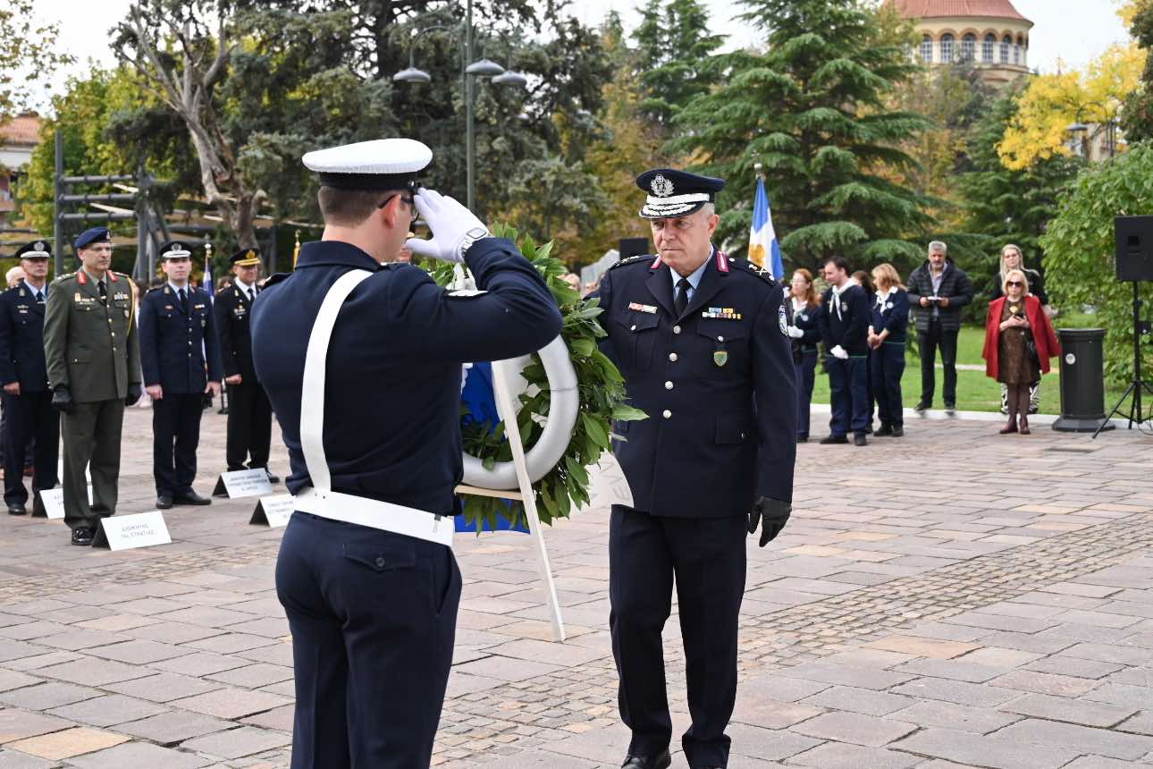 Λίγο μετά τις 11 το πρωί μαθητές εκπρόσωποι αρχών και φορέων, καθώς και πολίτες, συγκεντρώθηκαν μπροστά από το Δημαρχείο της Λάρισας και με τη Φιλαρμονική του Δήμου να προηγείται, μετακινήθηκαν προς το Ηρώο της πόλης. Εκεί, που ακολούθησε η τέλεση Επιμνημόσυνης δέησης, η ομιλία της Προέδρου του Δημοτικού Συμβουλίου, Γαρυφαλλιάς Καρυστιανού-Γκολφινοπούλου και ολοκληρώθηκαν με την κατάθεση στεφάνων.