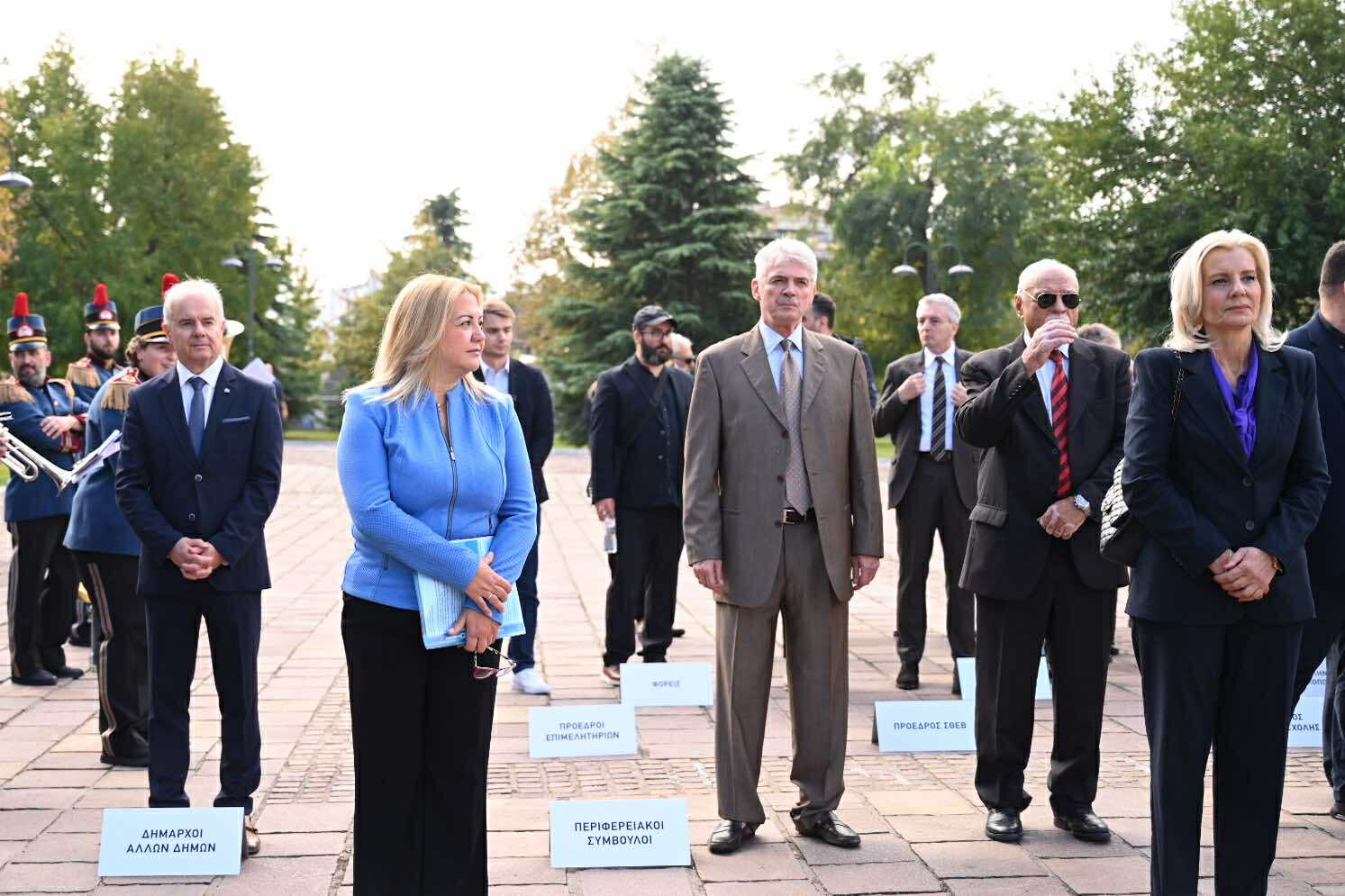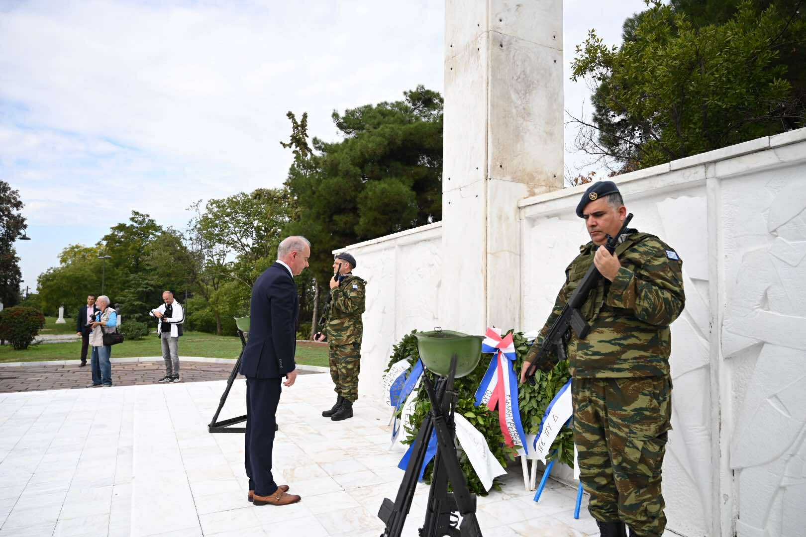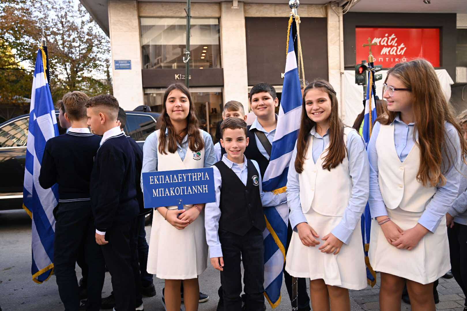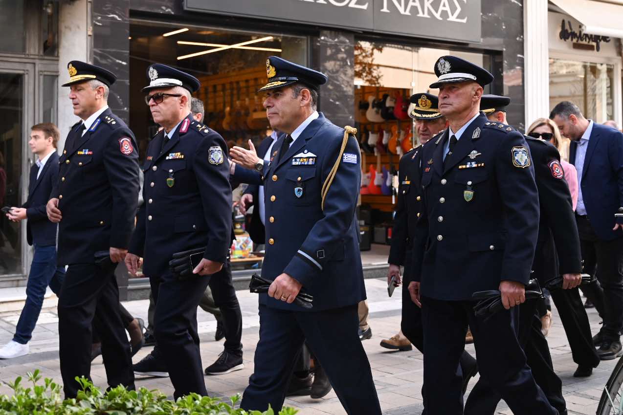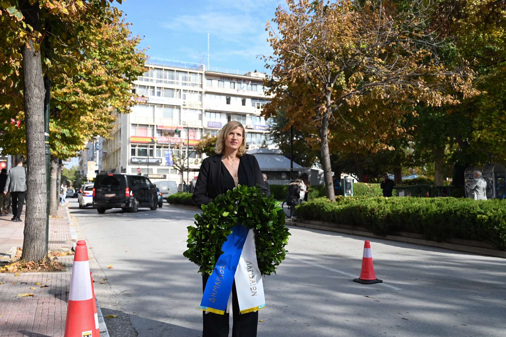 Λίγο μετά τις 11 το πρωί μαθητές εκπρόσωποι αρχών και φορέων, καθώς και πολίτες, συγκεντρώθηκαν μπροστά από το Δημαρχείο της Λάρισας και με τη Φιλαρμονική του Δήμου να προηγείται, μετακινήθηκαν προς το Ηρώο της πόλης. Εκεί, που ακολούθησε η τέλεση Επιμνημόσυνης δέησης, η ομιλία της Προέδρου του Δημοτικού Συμβουλίου, Γαρυφαλλιάς Καρυστιανού-Γκολφινοπούλου και ολοκληρώθηκαν με την κατάθεση στεφάνων.