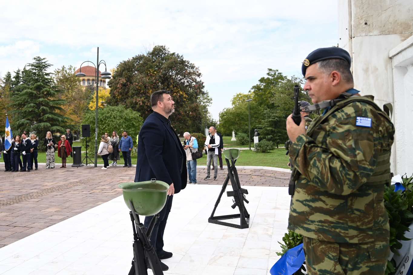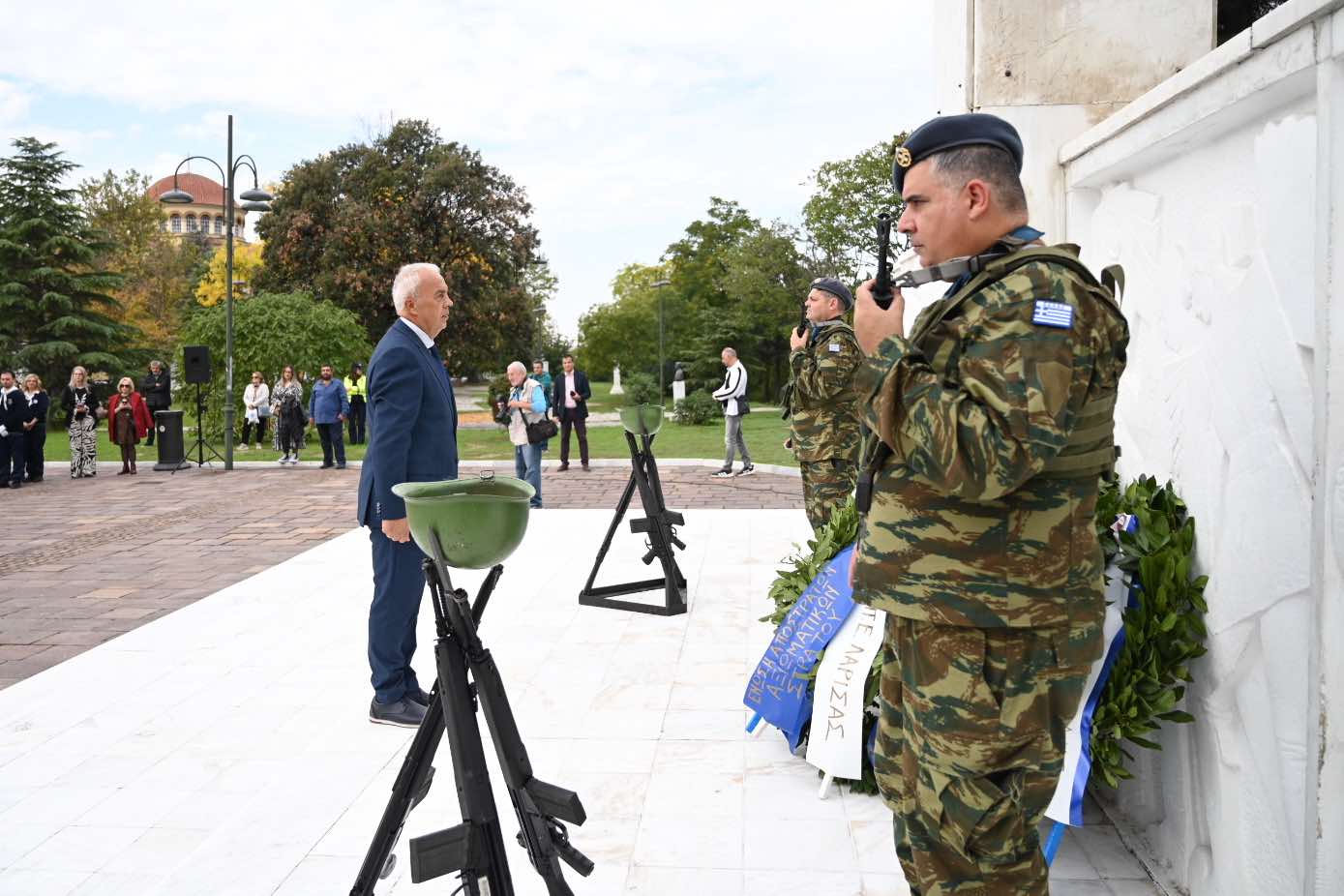 Θανάσης Μαμάκος: Σήμερα τιμούμε μία από τις εμβληματικότερες στιγμές της ιστορίας της πόλης μας. Την 23η Οκτωβρίου 194 η Λάρισα ανάσανε ξανά ελεύθερα ύστερα από 3,5 σκοτεινά χρόνια βίας και φόβου. Οι γερμανικές δυνάμεις κατοχής κατά την αποχώρησή τους άφησαν πίσω τους ερείπια αλλά και μία πόλη που δεν λύγισε ποτέ. Η απελευθέρωση δεν ήταν ένα τυχαίο γεγονός, ήταν αποτέλεσμα των προσπαθειών, της ενότητας, της αντοχής, της αντίστασης των Λαρισαίων.