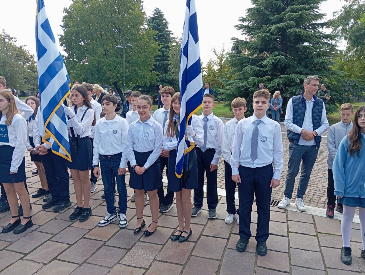 “Το σχολείο μας, υπό την συνοδεία της εκπαιδευτικού Φυσικής Αγωγής κας Ξενοπούλου Παρασκευής καθώς και άλλα Γυμνάσια και Λύκεια της Λάρισας, απέτισαν φόρο τιμής στους αγώνες των προγόνων μας, που στις 23 Οκτωβρίου του 1944 απελευθέρωσαν την πόλη μας από τη ναζιστική κατοχή.