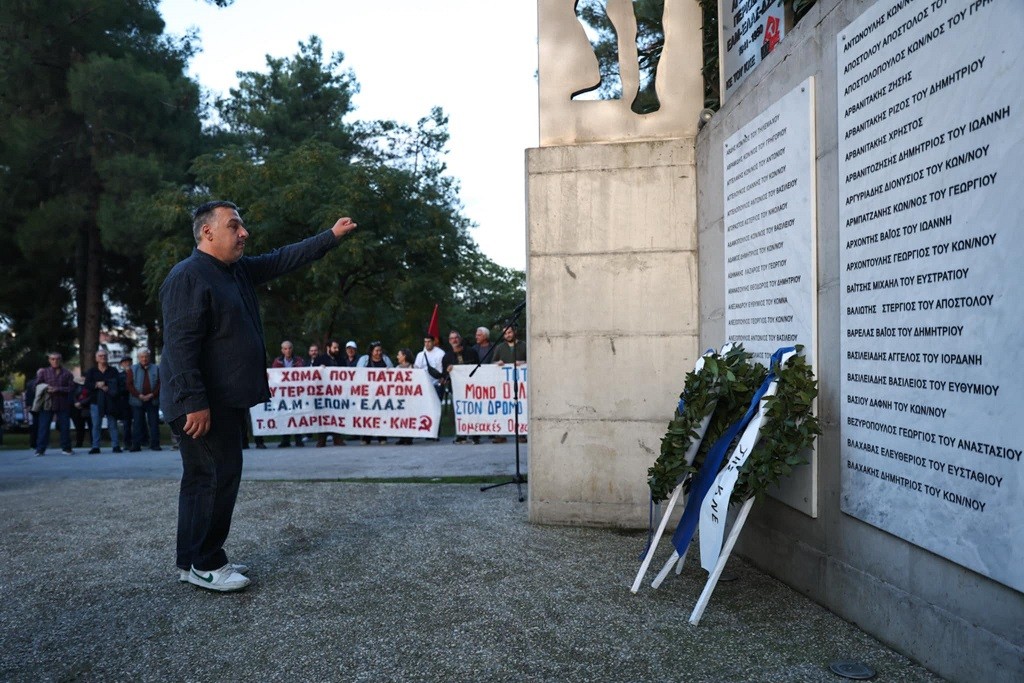 Στο πλαίσιο της εκδήλωσης κατατέθηκαν στεφάνια στο Μνημείο από την ΤΕ Λάρισας του ΚΚΕ, τα ΤΣ της ΚΝΕ και την ΠΕΑΕΑ-ΔΣΕ , ενώ κρατήθηκε και ενός λεπτού σιγή.