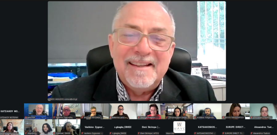 Χαιρετισμό απηύθυνε ο κ. Βασίλειος Σίμος, Θεματικός Αντιπεριφερειάρχης Παιδείας και Ισότητας της Περιφέρειας Θεσσαλίας, ο οποίος επεσήμανε τη σημασία της εκπαίδευσης και της ισότιμης πρόσβασης των νέων στην αγορά εργασίας.