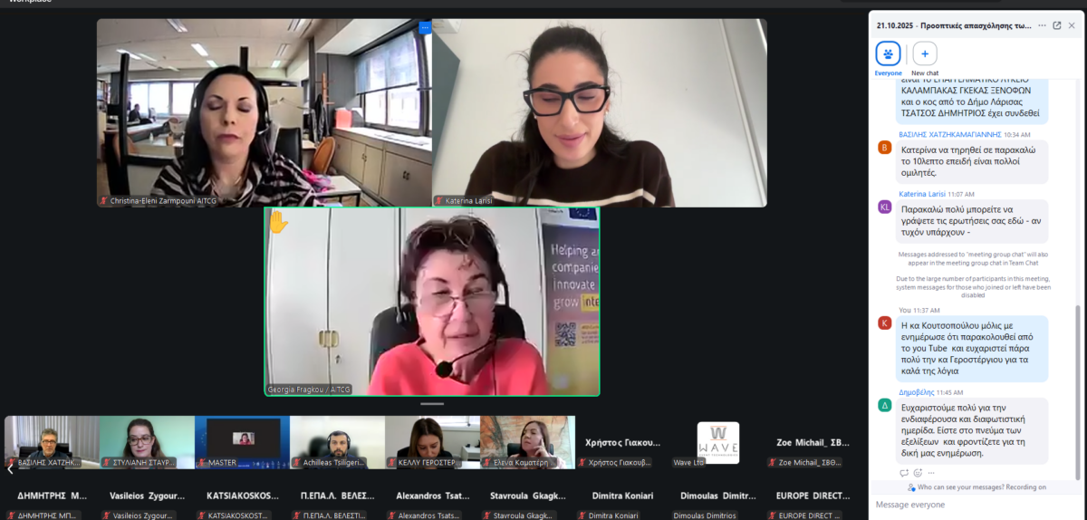 Με ιδιαίτερη επιτυχία πραγματοποιήθηκε η διαδικτυακή εκδήλωση του EUROPE DIRECT Περιφέρειας Θεσσαλίας με θέμα «Προοπτικές απασχόλησης των νέων στην Ευρωπαϊκή Ένωση», η οποία συγκέντρωσε το ενδιαφέρον πολλών συμμετεχόντων από όλη τη Θεσσαλία και άλλες περιοχές της χώρας.