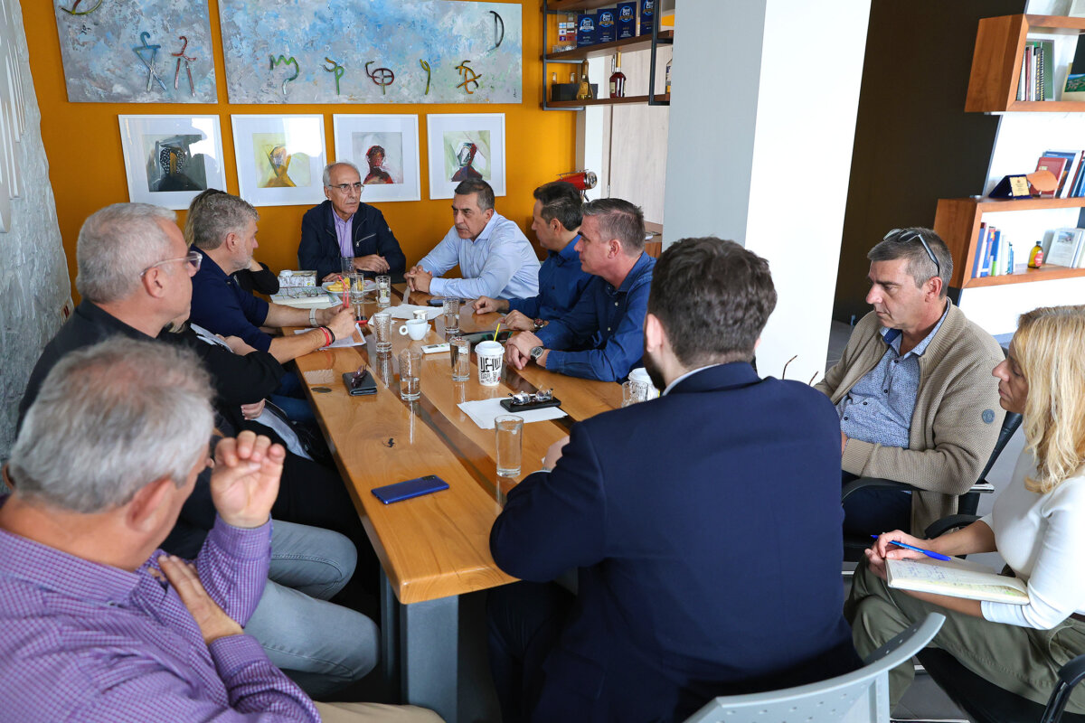 Τον Περιφερειάρχη συνόδευαν ο Εκτελεστικός Γραμματέας της Περιφέρειας Λάζαρος Μακρής ο Αντιπεριφερειάρχης Αγροτικής Ανάπτυξης Δημήτρης Τσέτσιλας, η Αντιπεριφερειάρχης Τουρισμού Νατάσα Αδαμοπούλου, και ο σύμβουλος Βασίλης Έξαρχος.