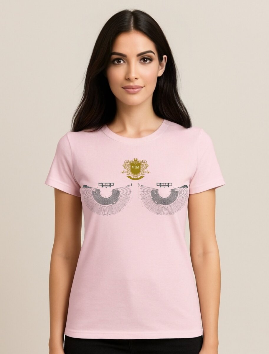 · το ροζ μπλουζάκι, εμπνευσμένο από τα αρχαία ελληνικά θέατρα — χώρους φωνής και συλλογικότητας, σαν μάτια ανοιχτά στην πρόληψη,