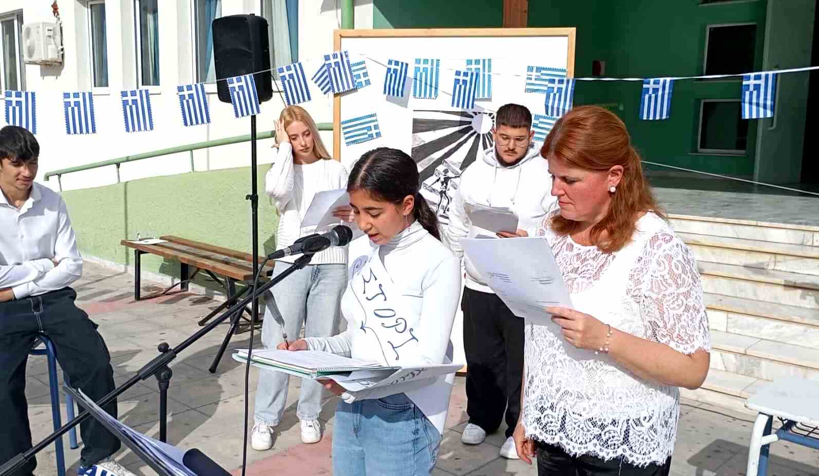 Οι μαθητές και οι μαθήτριες του σχολείου εστίασαν στα παιδιά της Κατοχής, της Αντίστασης και απέδωσαν με επιτυχία αρκετά θεατρικά δρώμενα, απήγγειλαν ποιήματα και τραγούδησαν επίκαιρα τραγούδια, καταφέρνοντας έτσι να μας μεταφέρουν νοερά στην πολεμική και ηρωική ατμόσφαιρα της Ελλάδας, της περιόδου 1940-1944.