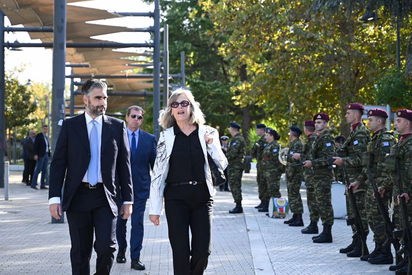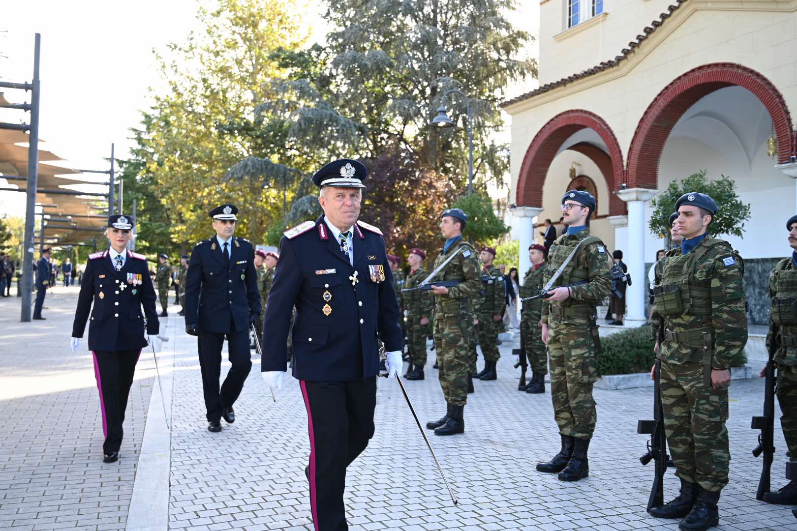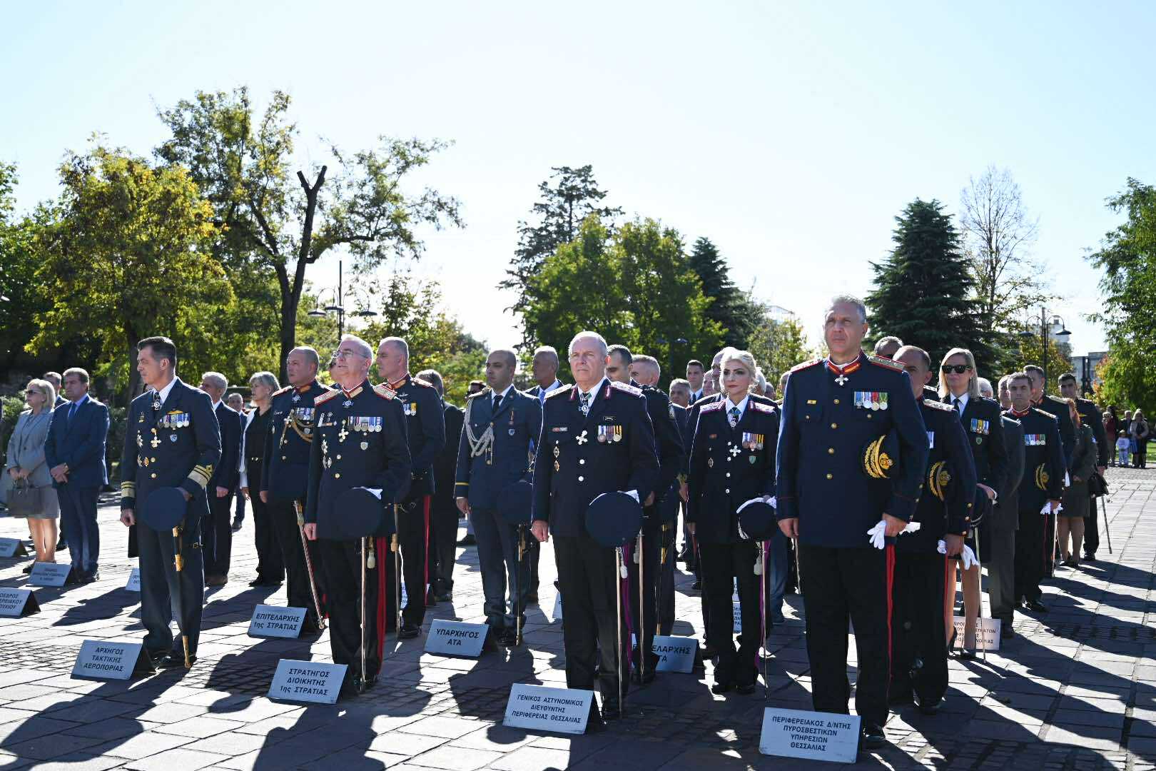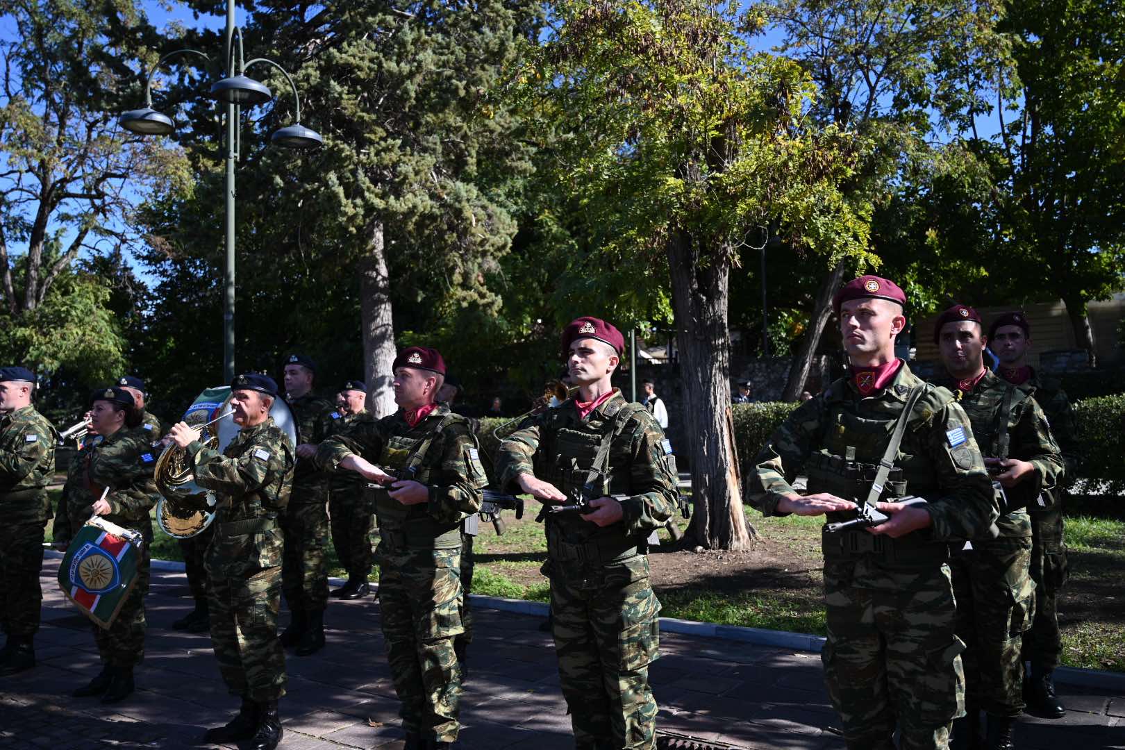 Μετά το τέλος της δοξολογίας εκφωνήθηκε ο πανηγυρικός της ημέρας από την Χρυσούλα Δαρδακούλη, Διευθύντρια του 19ου Δημοτικού Σχολείου Λάρισας, και έγινε ανάκρουση του Εθνικού Ύμνου.